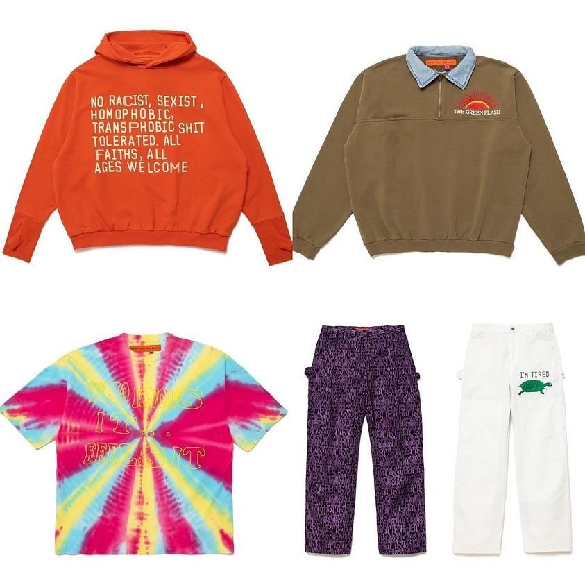 此外还有扎染效果的摇粒绒卫衣以及短袖 T 恤,每件单品都有超高的辨识度。
