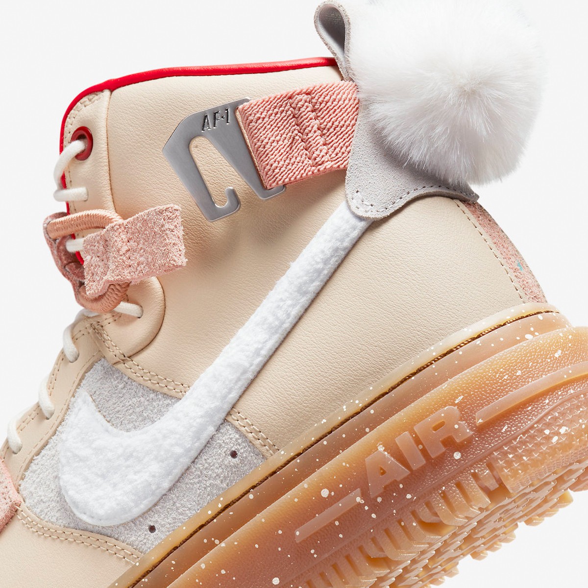 更特别的是,鞋侧 Swoosh 与后跟位置,通过毛绒材质营造类似尾巴的可爱装扮,整体硬朗之余又不乏趣味释放。