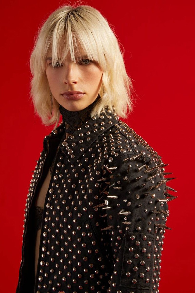 当中最值得一提的也莫过于夹克于长裤,整体造型分为了卡其色和黑色,并在上方铺满了铆钉与纽扣装饰,彰显出了 GUCCI 一如既往的奢华气质。