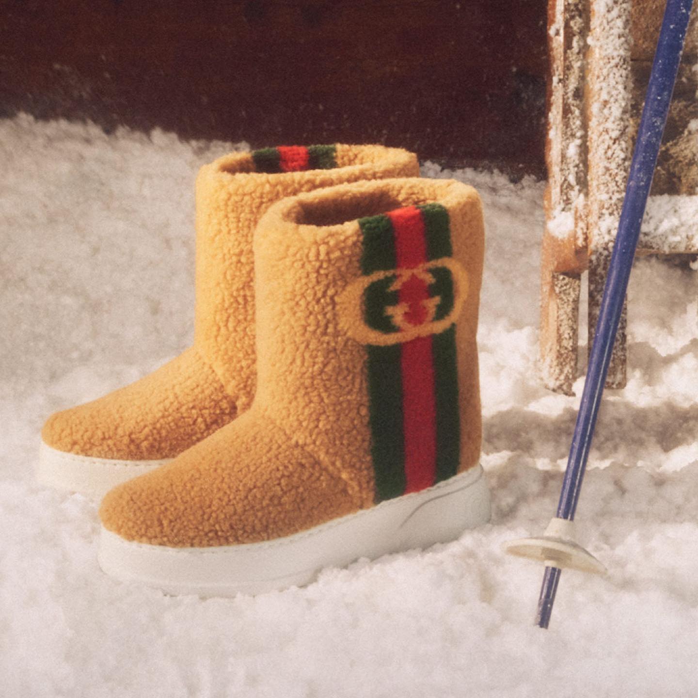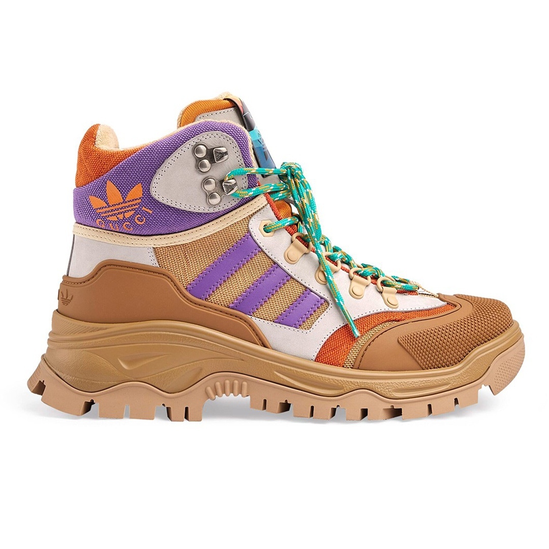 本次有专为雪地打造的户外雪地靴,硬朗又醒目的鞋身轮廓,细节上则呈现了 Gucci/三叶草 Logo,展现了双方的合作身份,预计售价为 $1200 美元。