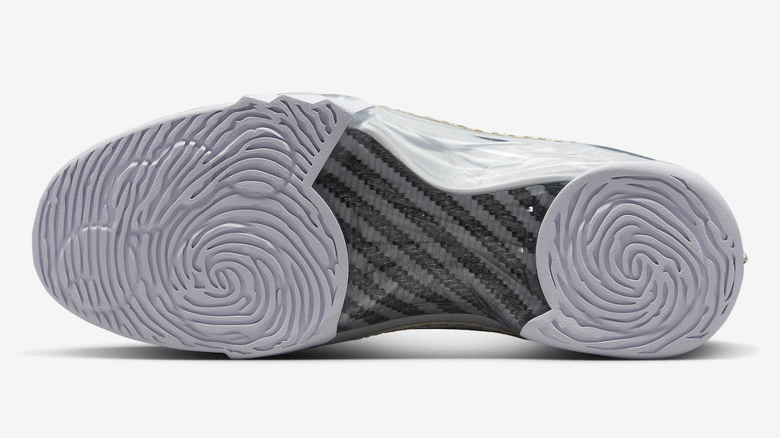AJ23 标志性的皮革鞋面以丰富的走线装饰,指纹外底和硕大的中足碳板自然也不会缺席。