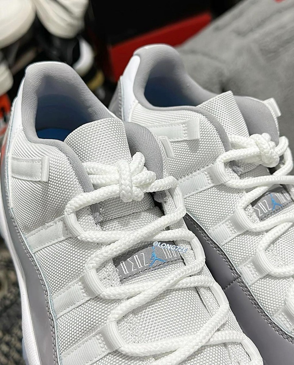 这双 Air Jordan 11 Low “Cement Grey” 最大的变化就是在细节设计上。
