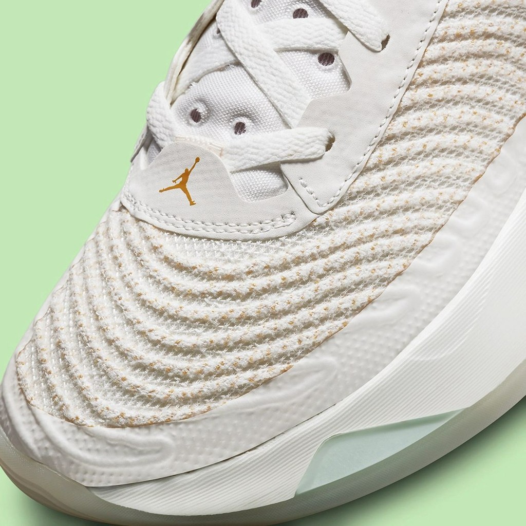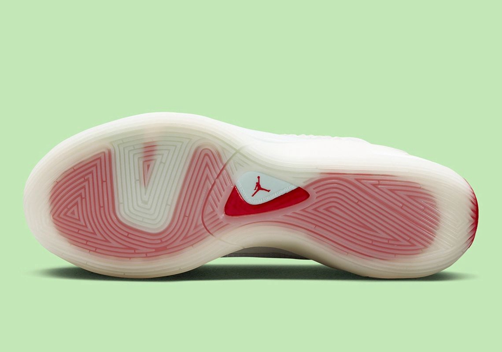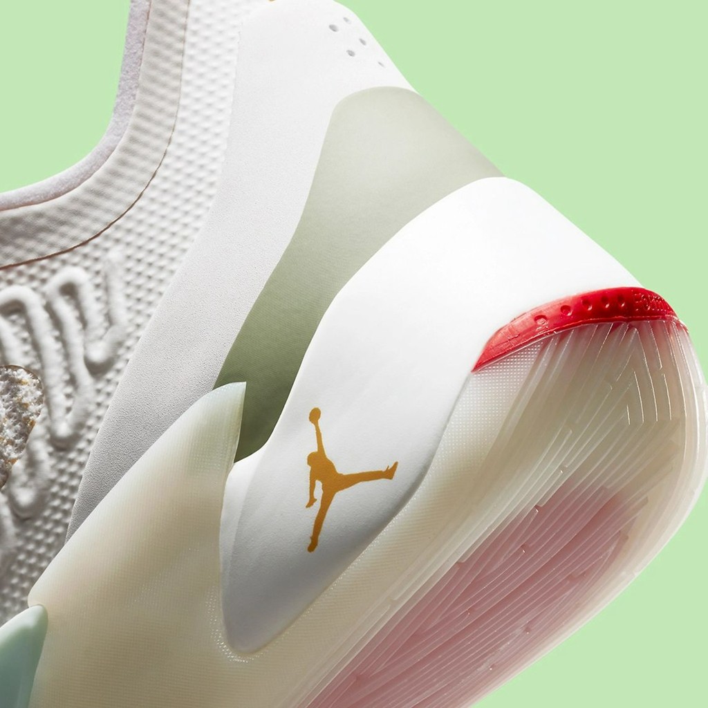 鞋面全新的编织材质采用了奶白色呈现,辅以淡绿色以及红色的点缀,视觉效果格外清新。