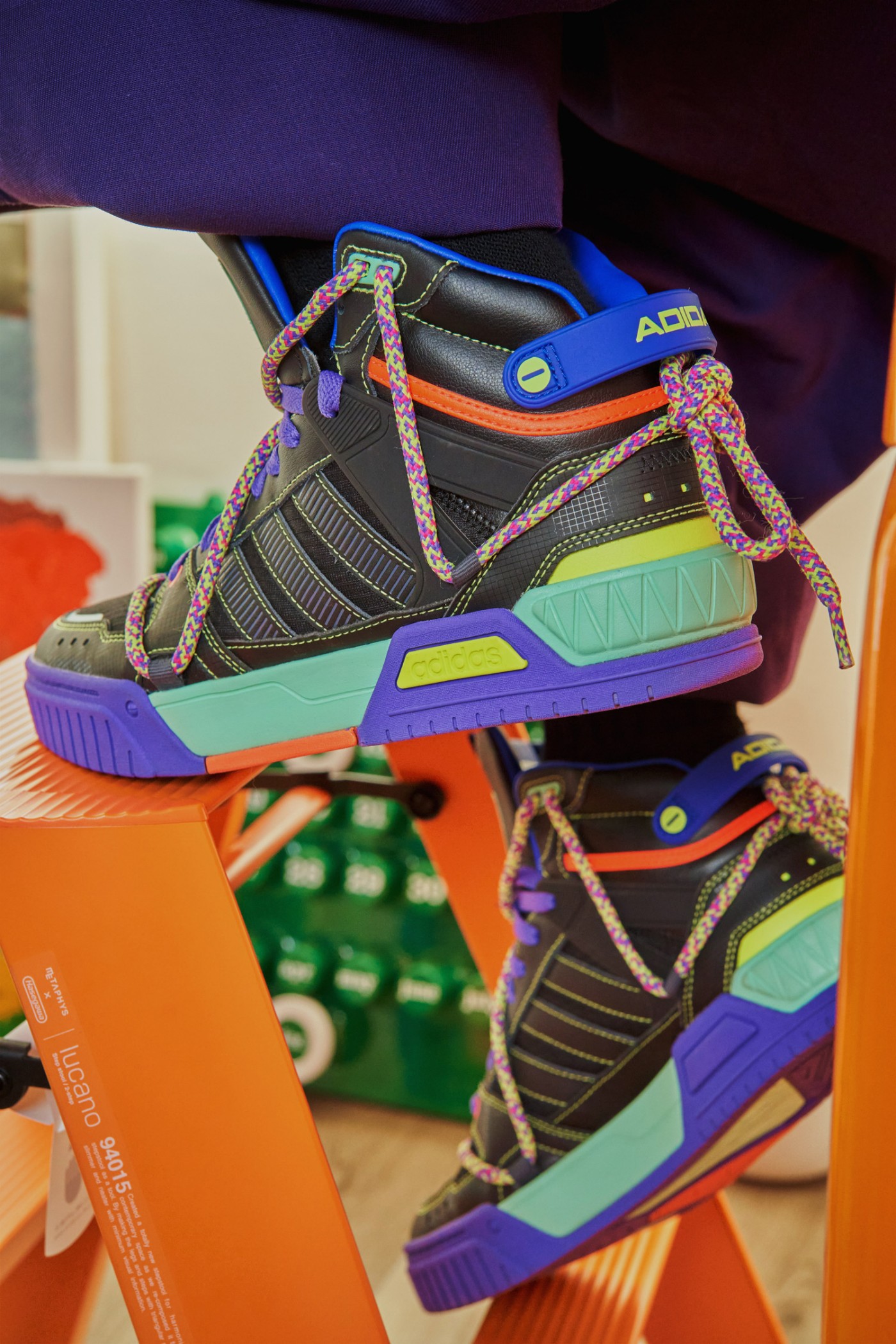 鞋底辅以霓虹灯般的彩色细节,加上横跨鞋面的鞋带,让这双鞋的穿搭效果充满了活力。