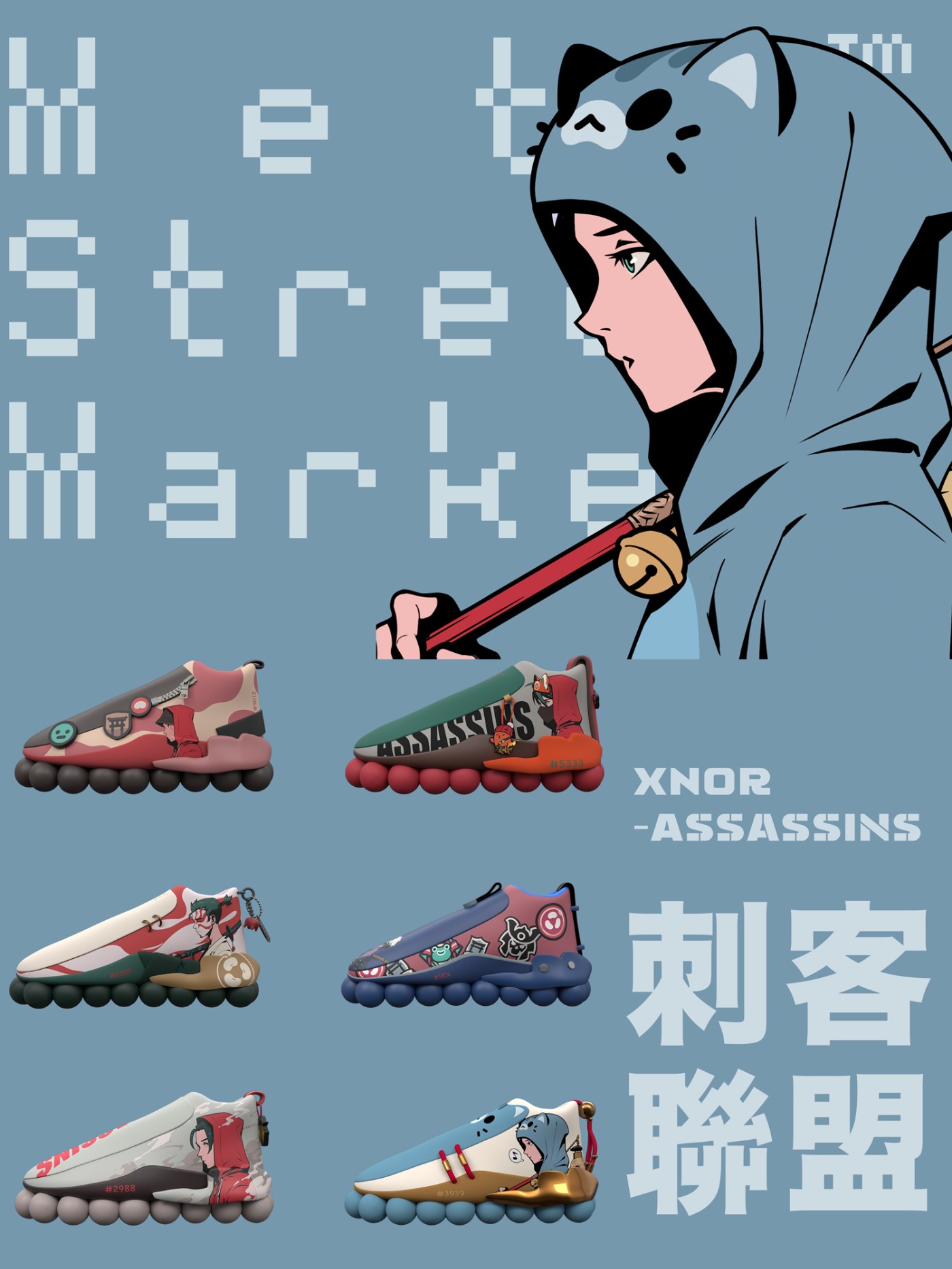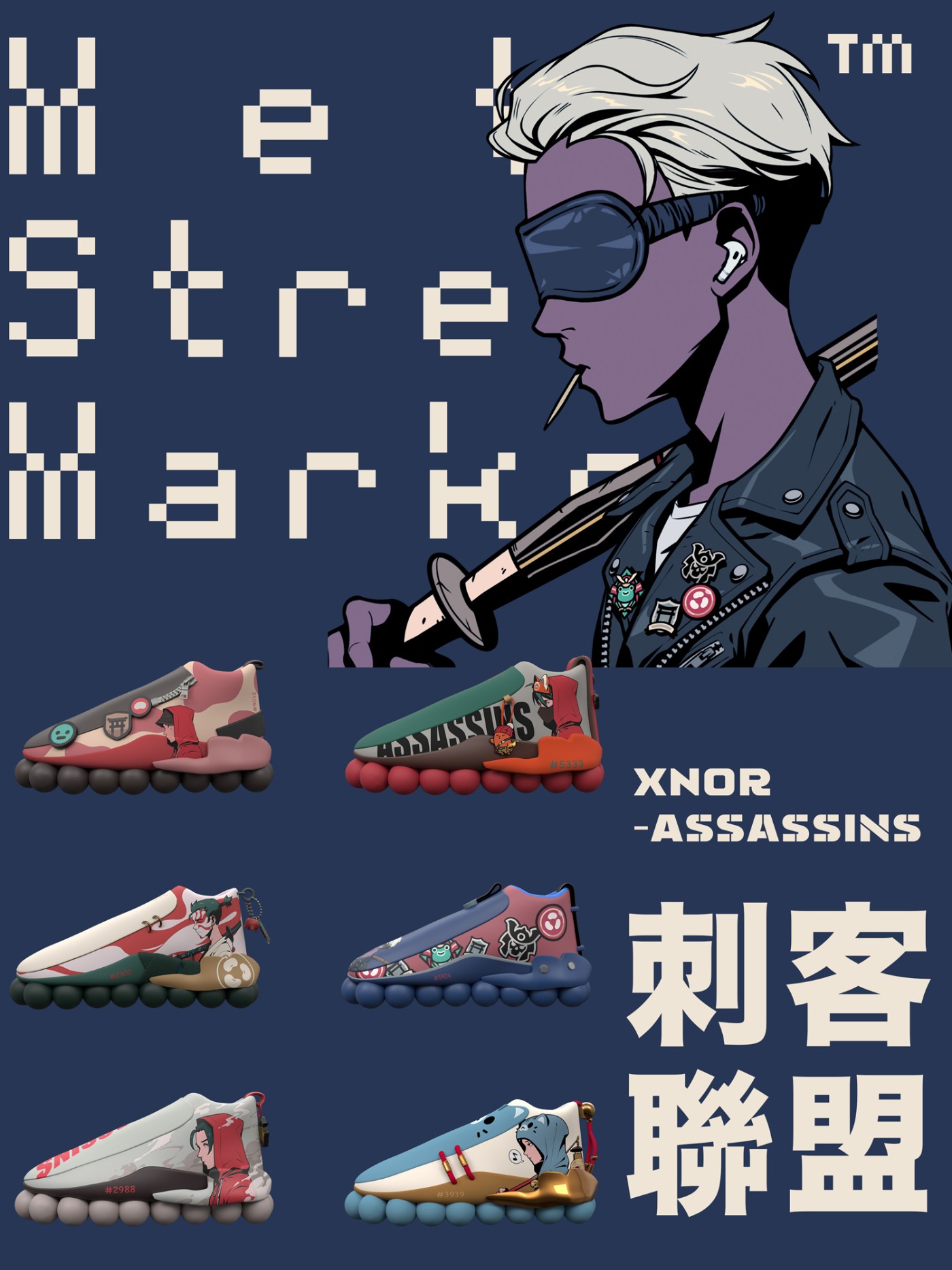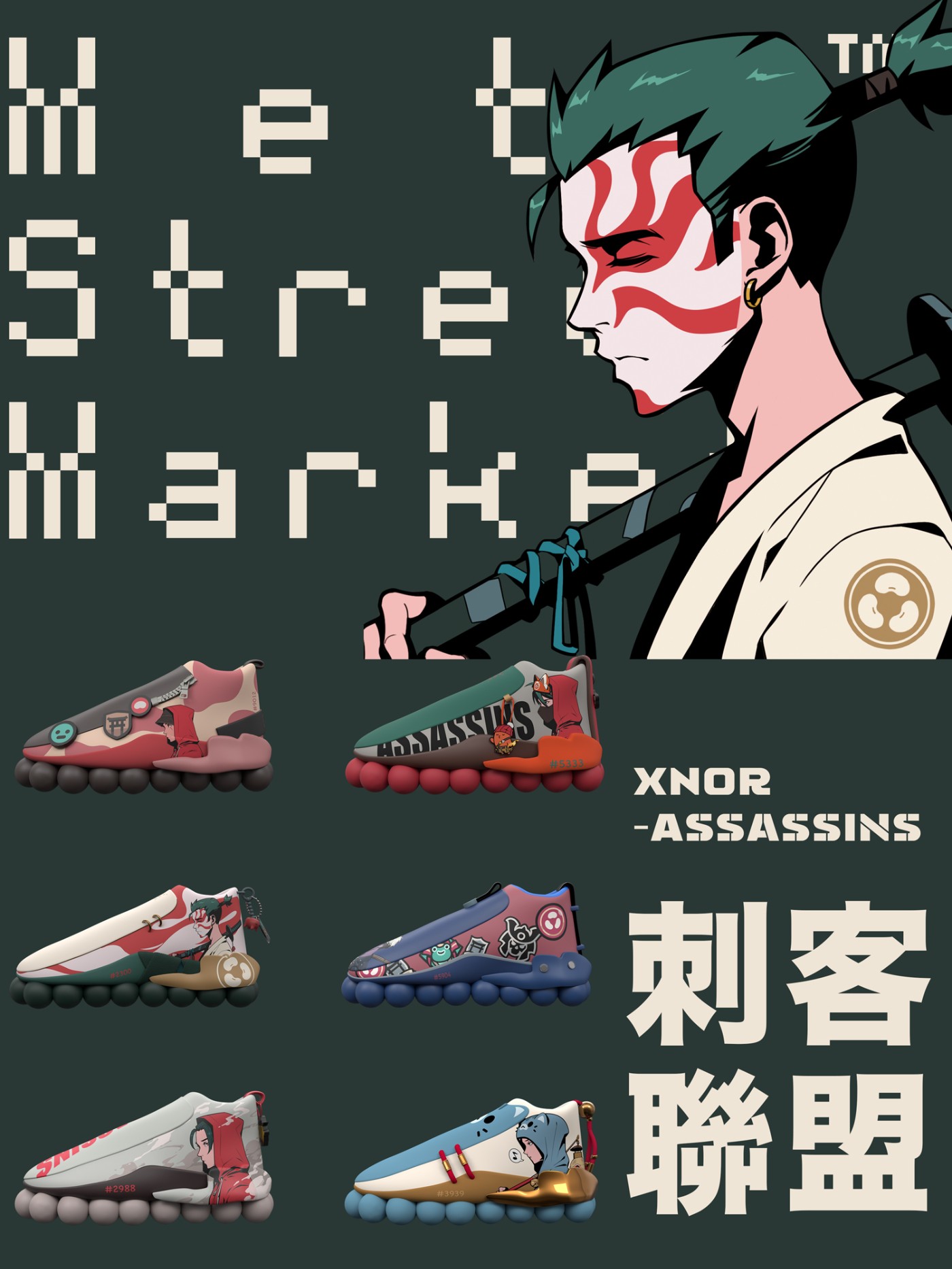 此次携手 Meta Street Market 带来联名系列,以品牌旗下经典鞋型 XNOR 做为设计蓝本,推出限量 333 双的 XNOR-Assassins 联名虚拟球鞋系列。