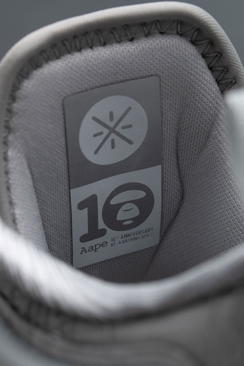 鞋舌上的加厚设计,将原本造型改为了 AAPE 猿人头像,进一步展现出了联名身份。