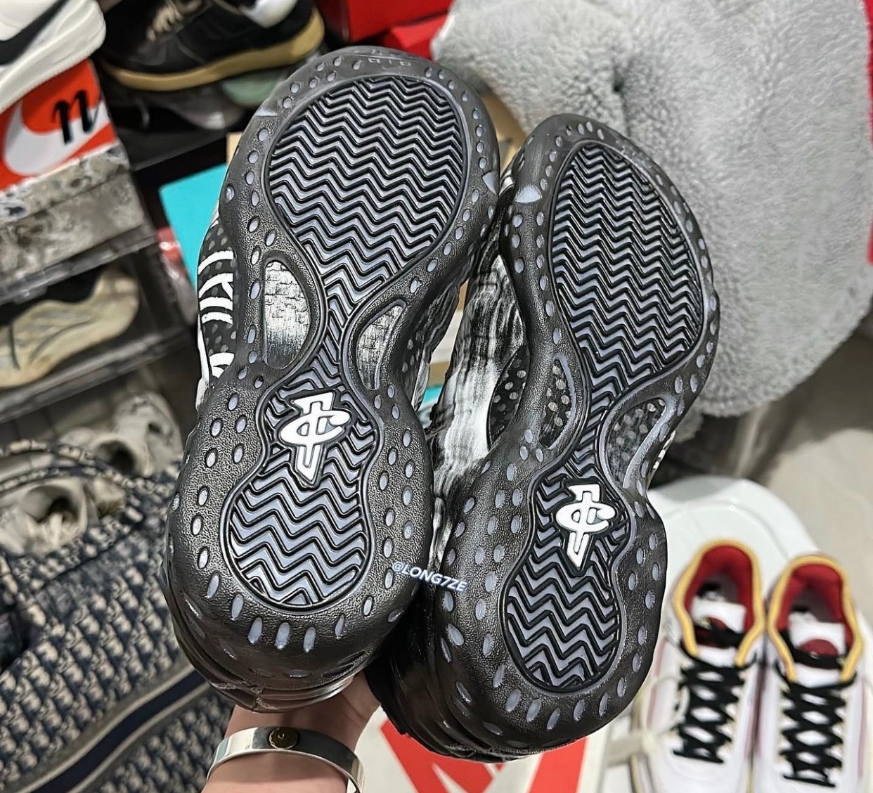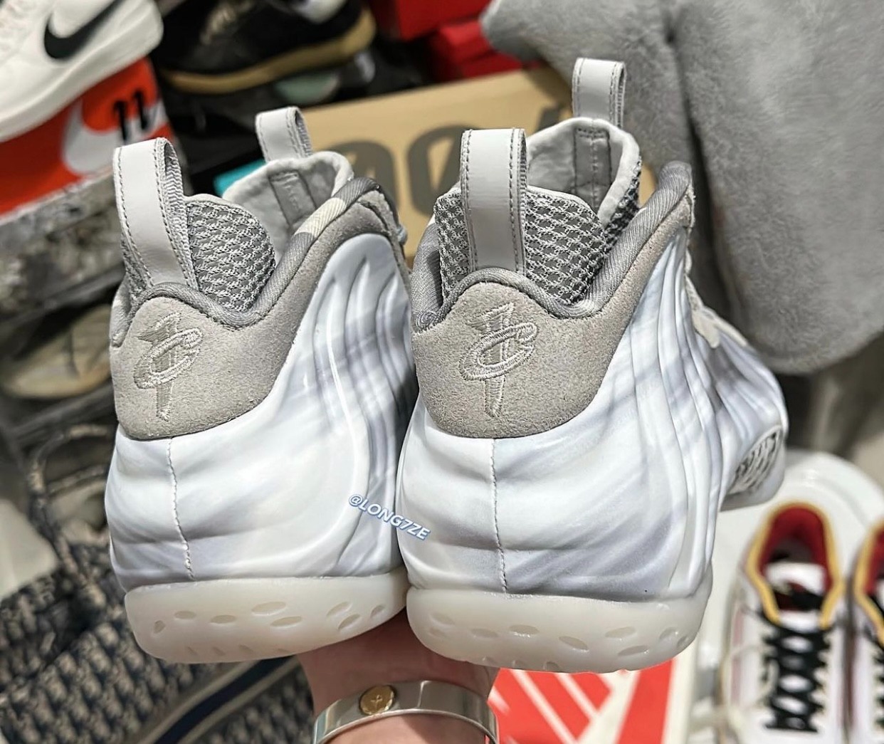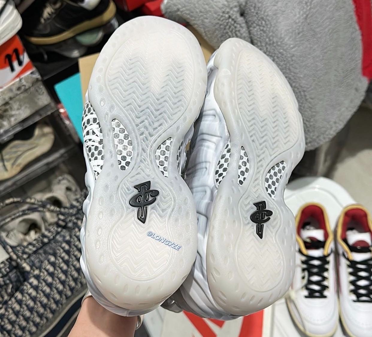 外底则是乳白色水晶外底,承袭 Nike Air Foamposite One 的设计精髓。