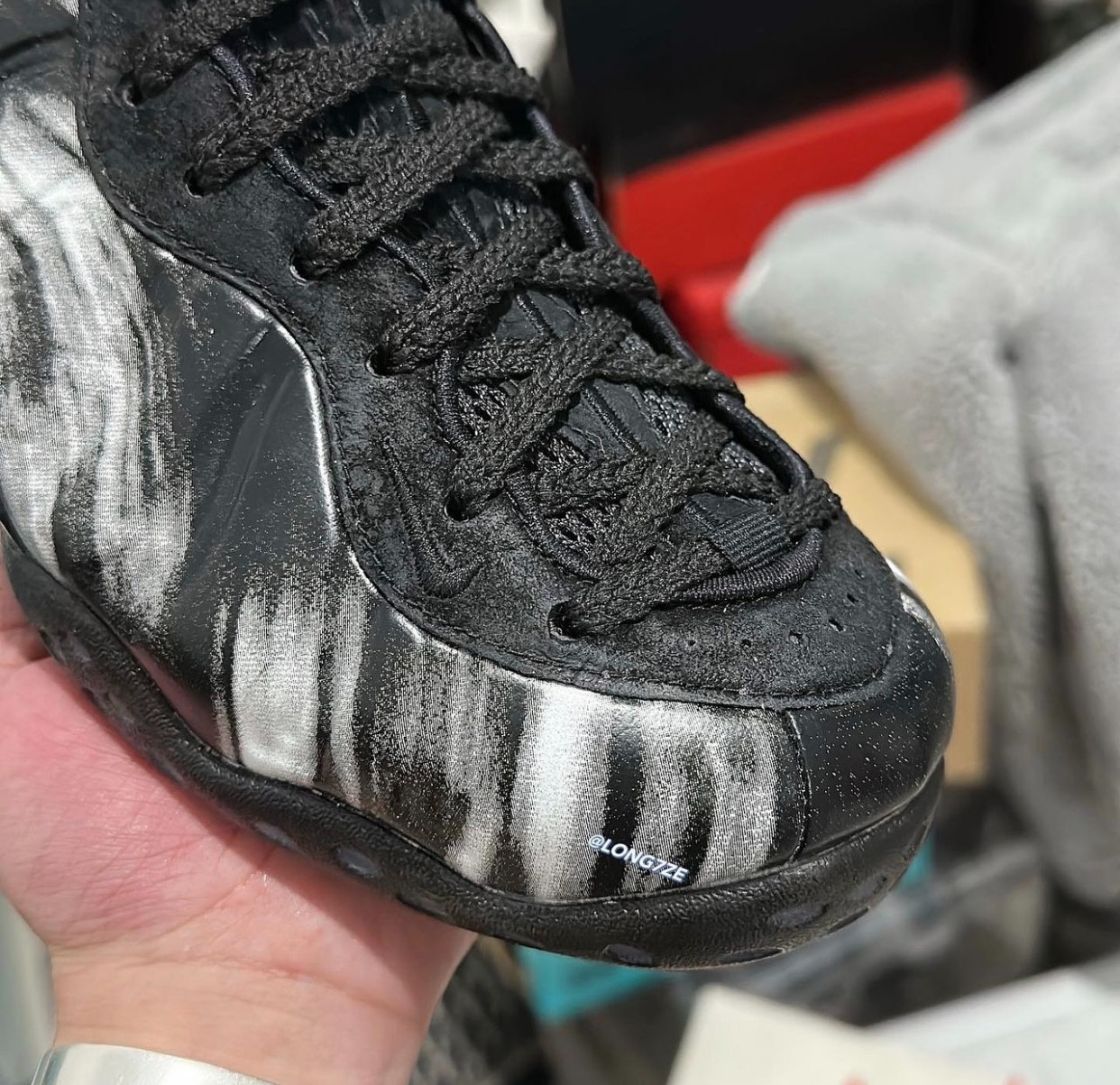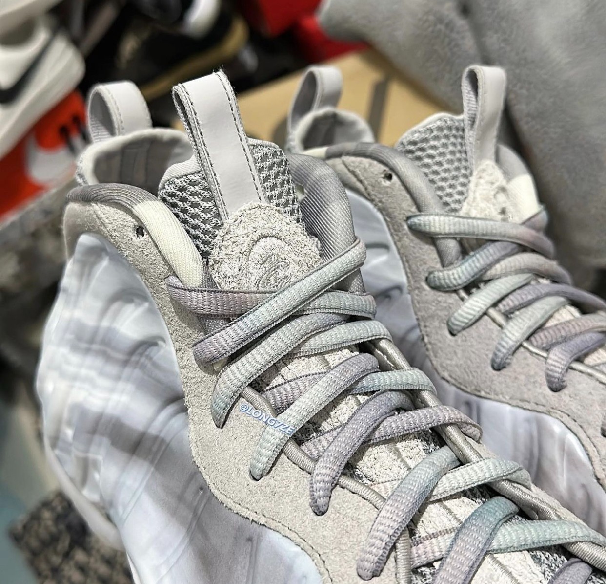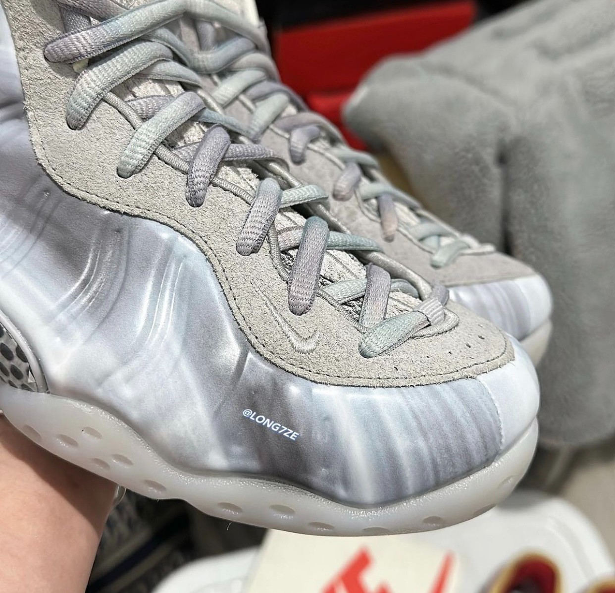 外底则是乳白色水晶外底,承袭 Nike Air Foamposite One 的设计精髓。