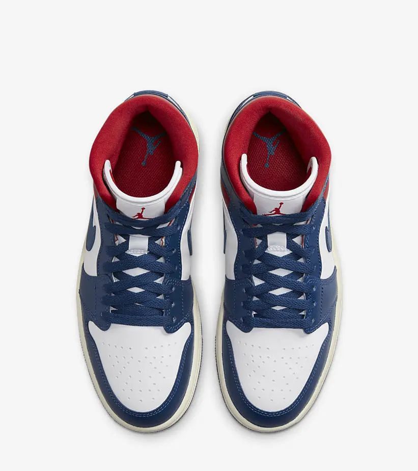整体以白色为底色,鞋身框架覆盖大面积海军蓝色,搭配红色点缀,与法国国旗配色不谋而合。