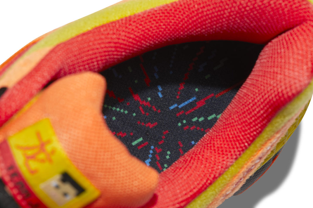 整体鞋身采用峡谷绿搭配白色与宫廷紫共同呈现。彩虹色调的鞋带、后跟点缀的花朵元素,以及鞋头 Brand New Day(崭新的一天)均散发出积极开朗的活力气氛。