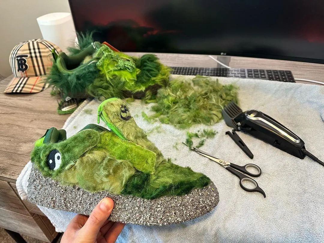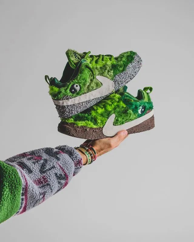 把经典的 Dunk 直接进行了一波爆改,特别是那一鞋面的绿毛,真是越看越上头!