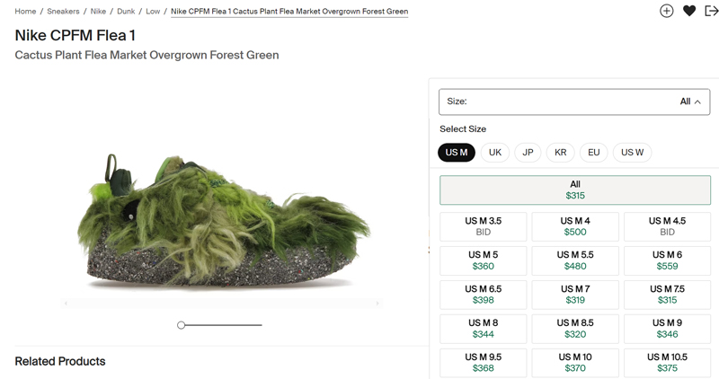 目前,这双 Cactus Plant Flea Market x Nike CPFM Flea 1 “Overgrown” 已经在国外正式登场,目前市价维持在 $36x 美元(42.5 码),约合 ¥25xx 元左右,不知道各位小伙伴还有什么其他的 DIY 想法,大家可以在评论区进行讨论!