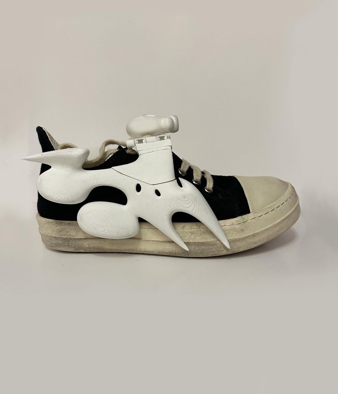 根据本人的说法,这个配件可以适配任何有鞋带的鞋款,包括这双 Rick Owens DRKSHDW 同样适用。