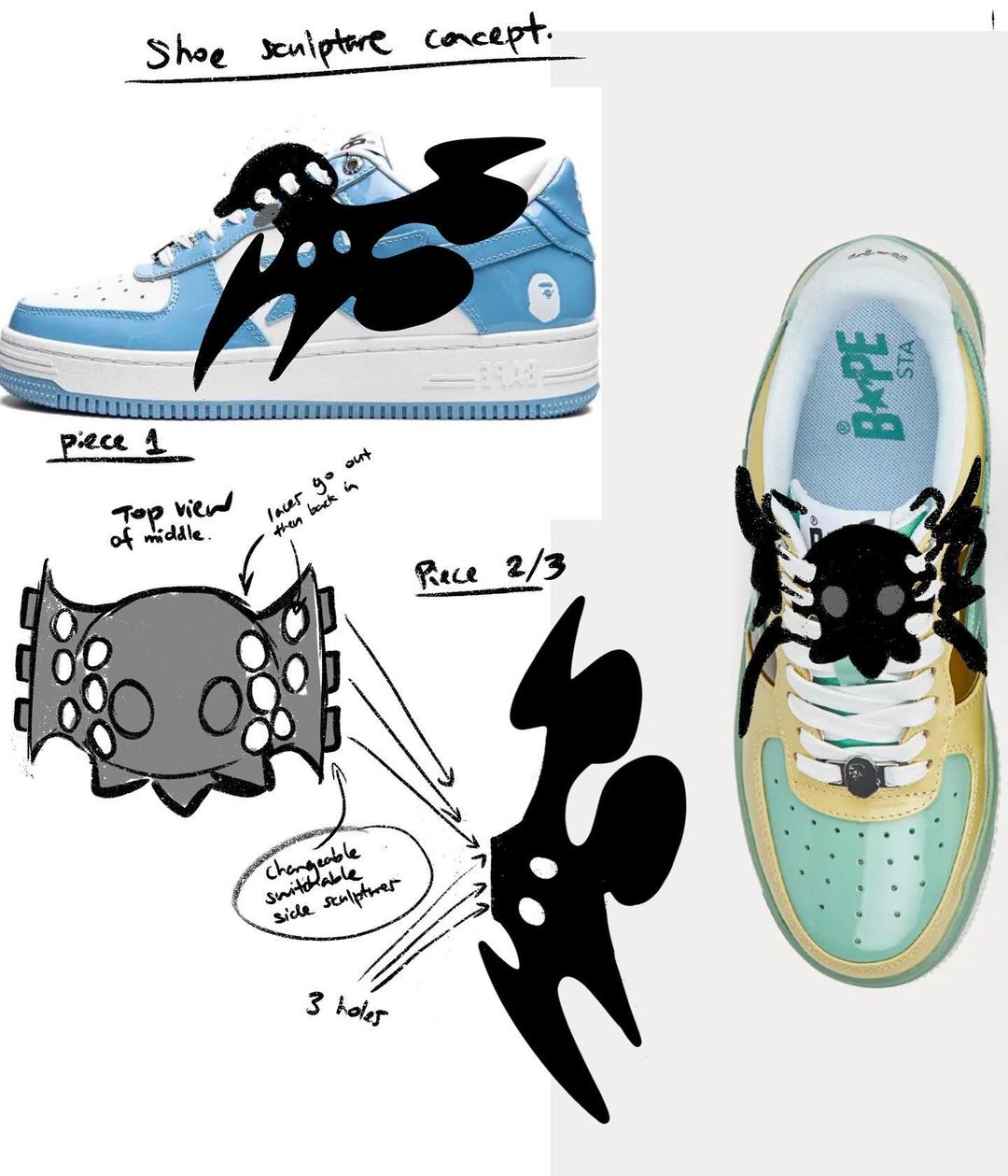 可以看到他为 BAPE STA™ 定制了翅膀造型的鞋扣,除了造型够吸睛,另一个亮点是居然是可以活动的。