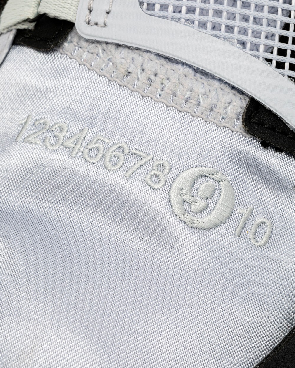 鞋面以大面积光滑织物覆盖,并点缀刺绣编号 9 彰显鞋款身份。