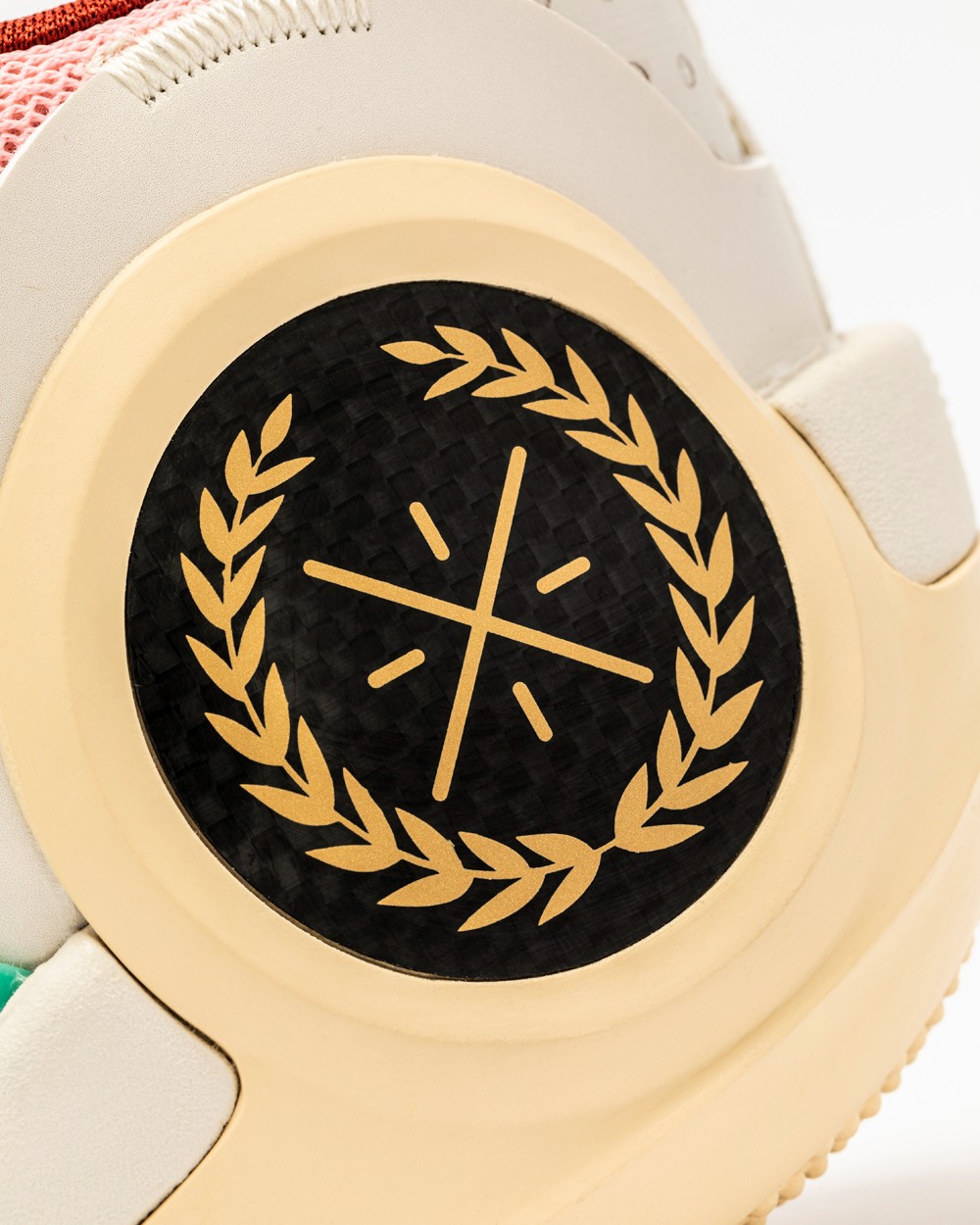 后跟碳板位置装饰有金色米字麦穗图案,彰显鞋款身份。