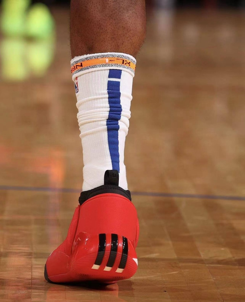 另外,哈登今天上脚的战靴也十分瞩目,正是玩家们期待已久的 adidas Harden Vol.7。