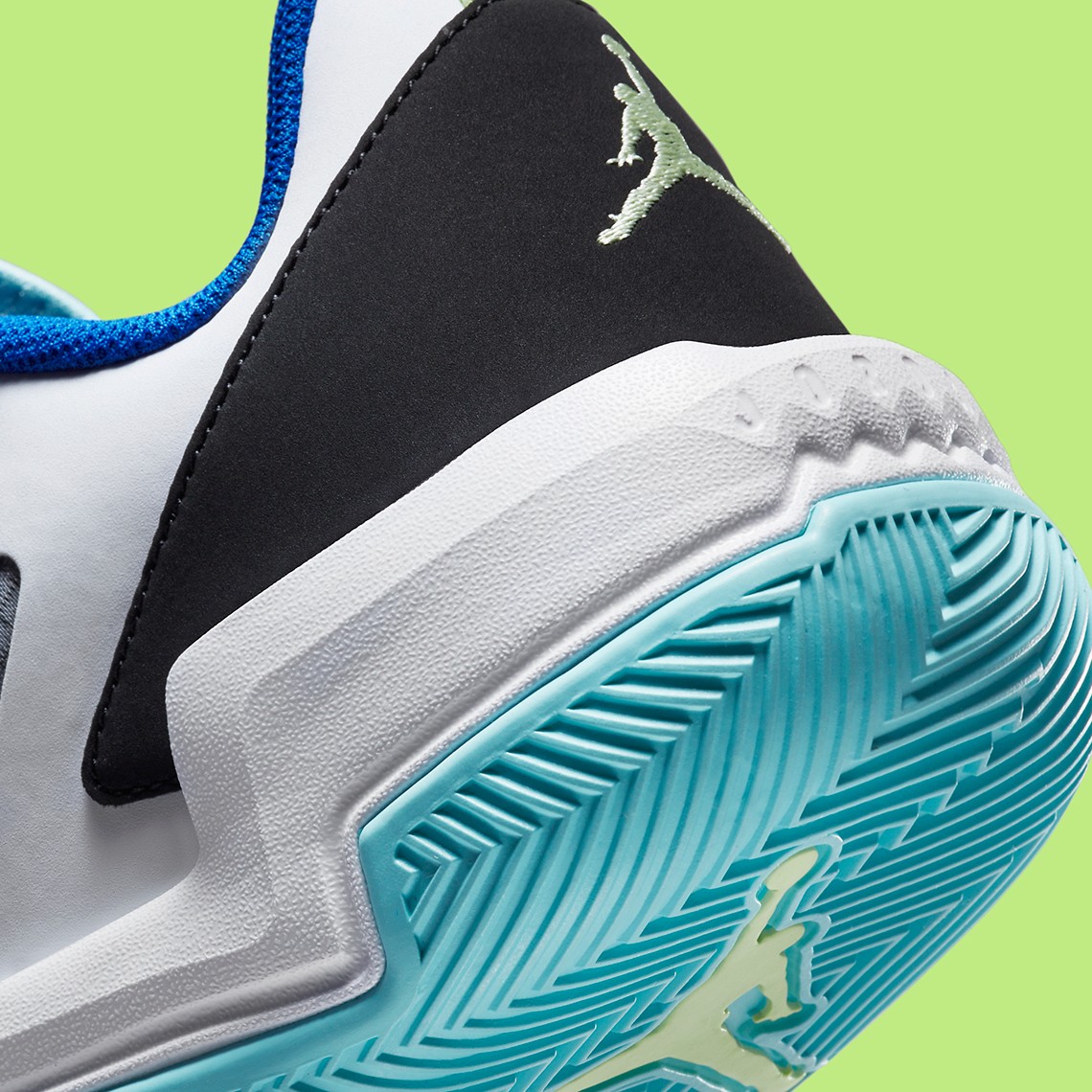 整双鞋采用白色妆点,青色、蓝色和黑色点缀,小清新气息十足。