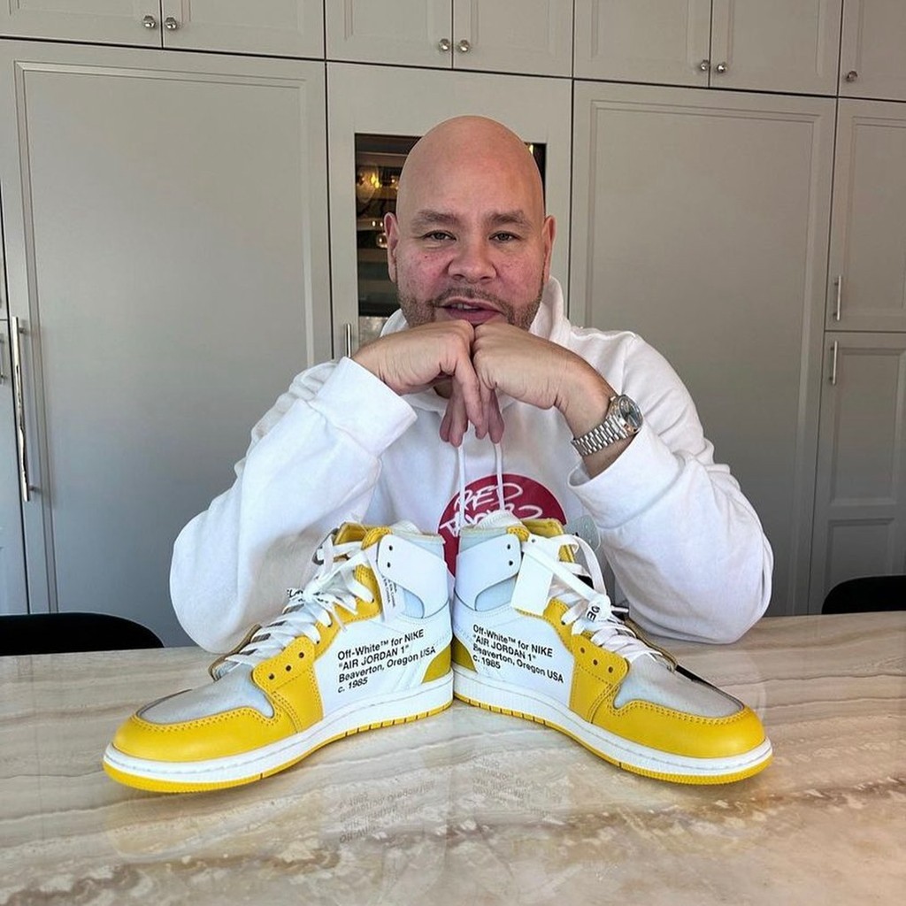 近日,美国著名说唱歌手 Fat Joe 在圣诞节更新了一则社交媒体,突然晒出了这双白黄 OFF-WHITE x Air Jordan 1。