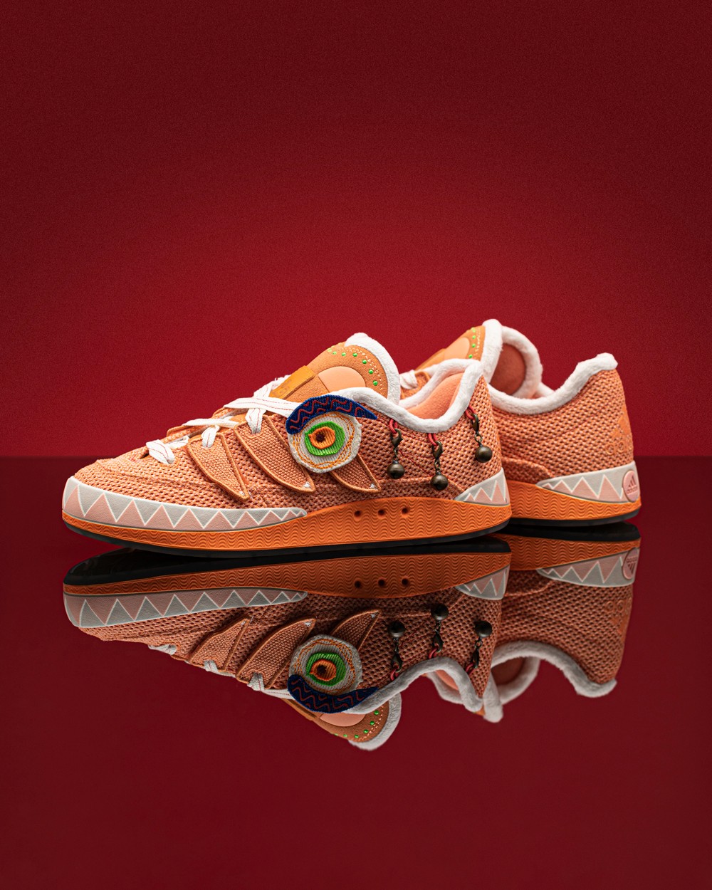 这双联名鞋是由国内艺术家张权主理的品牌 Melting Sadness 与 adidas Originals 打造的 CNY 版本「虎头面包鞋」。