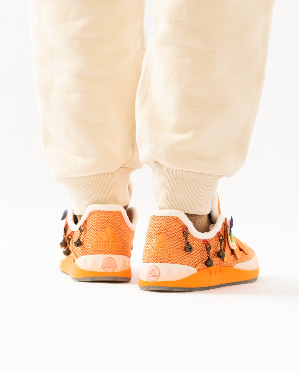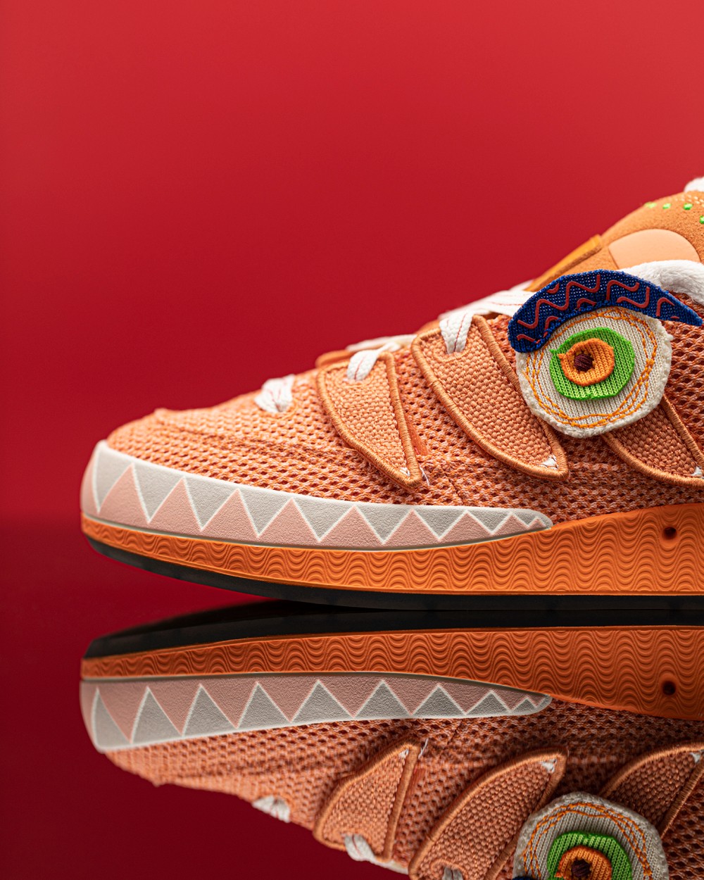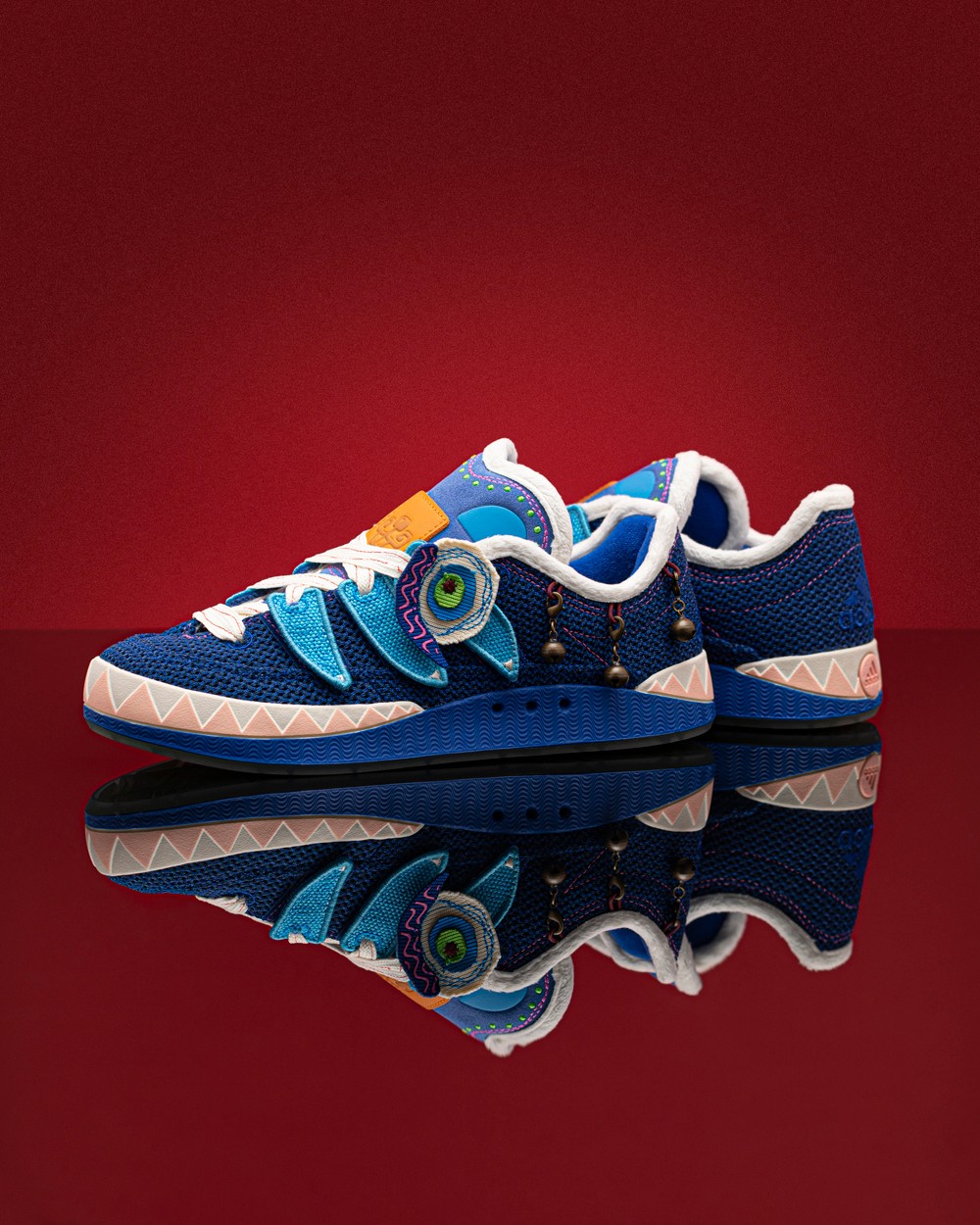 之所以有这个新名字,是因为这双 ADIMATIC 是以中国传统文化的虎头鞋为灵感设计,提供橙、蓝两款配色,相当有节日气氛。