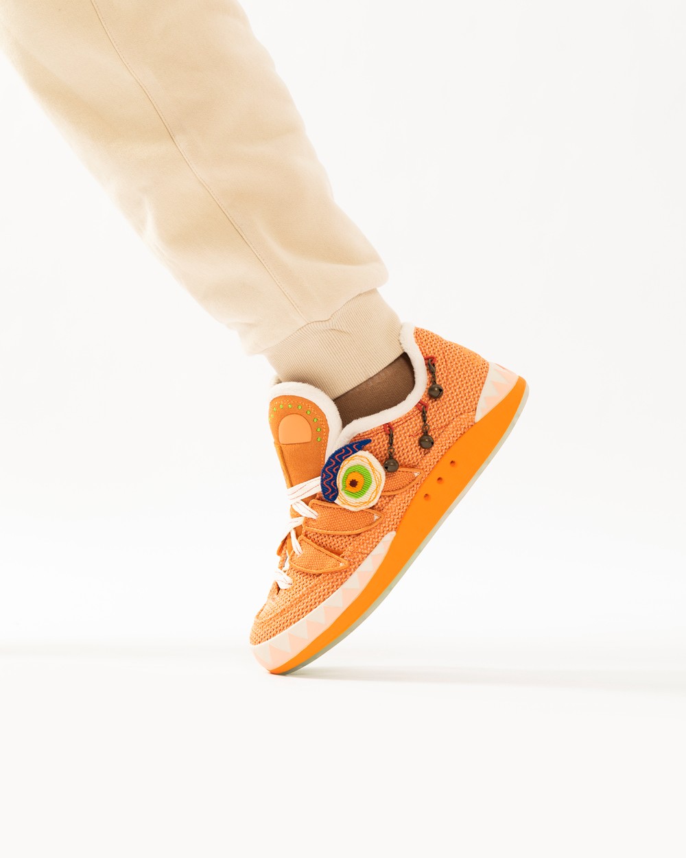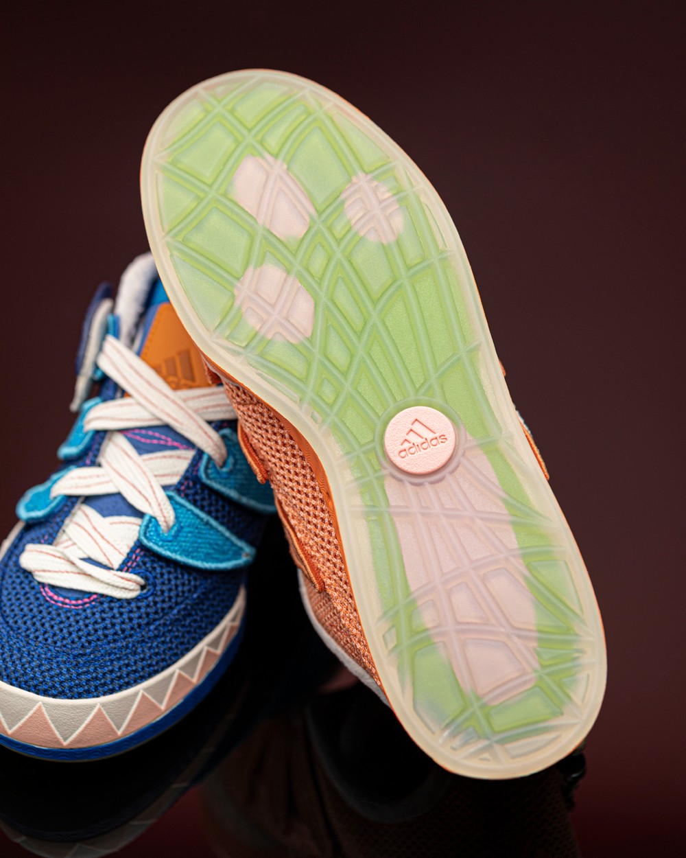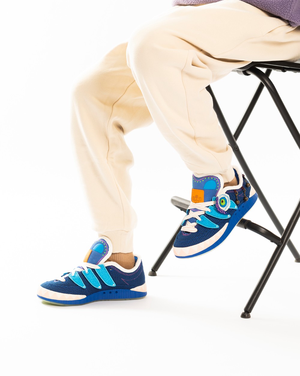 之所以有这个新名字,是因为这双 ADIMATIC 是以中国传统文化的虎头鞋为灵感设计,提供橙、蓝两款配色,相当有节日气氛。