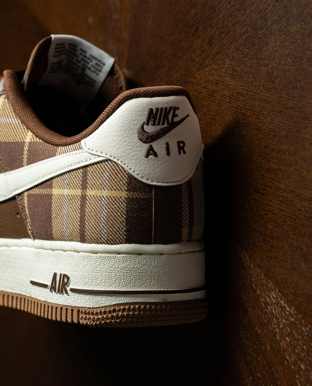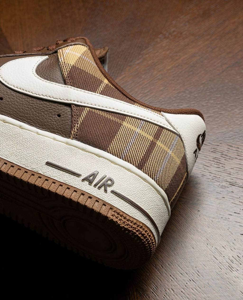 鞋身后半部分则点缀棕色格子图案,带来强烈的英伦优雅气质。