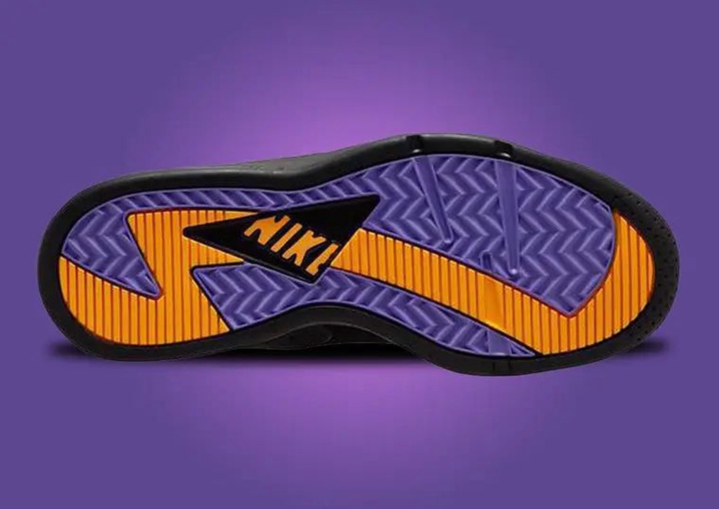 整双鞋以大面积黑色打造,辅以代表着洛杉矶湖人队的紫色和黄色进行妆点,造型格外讨喜。