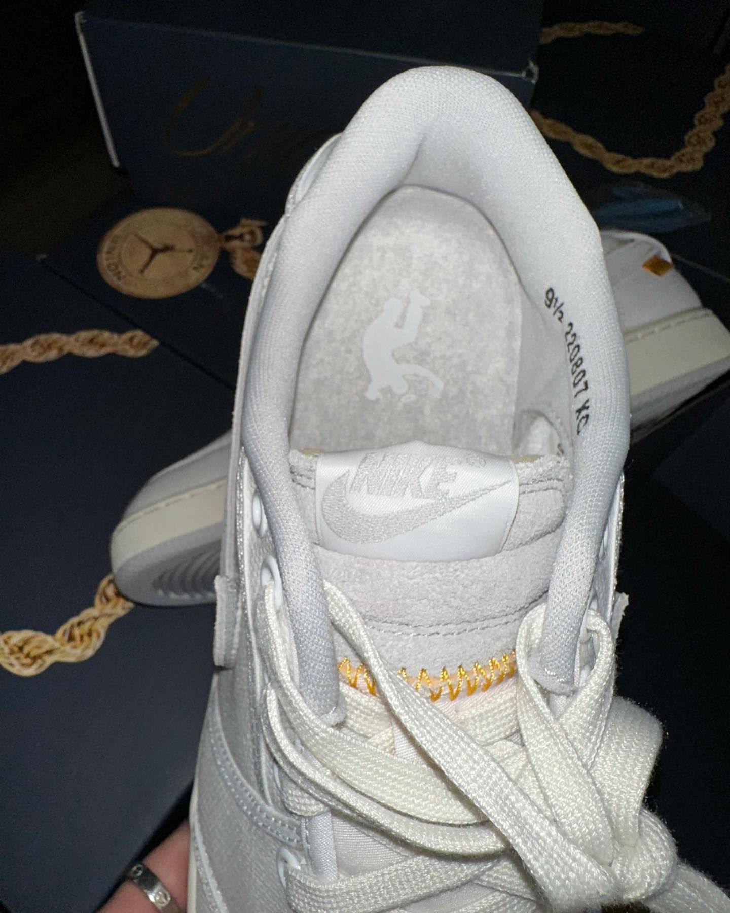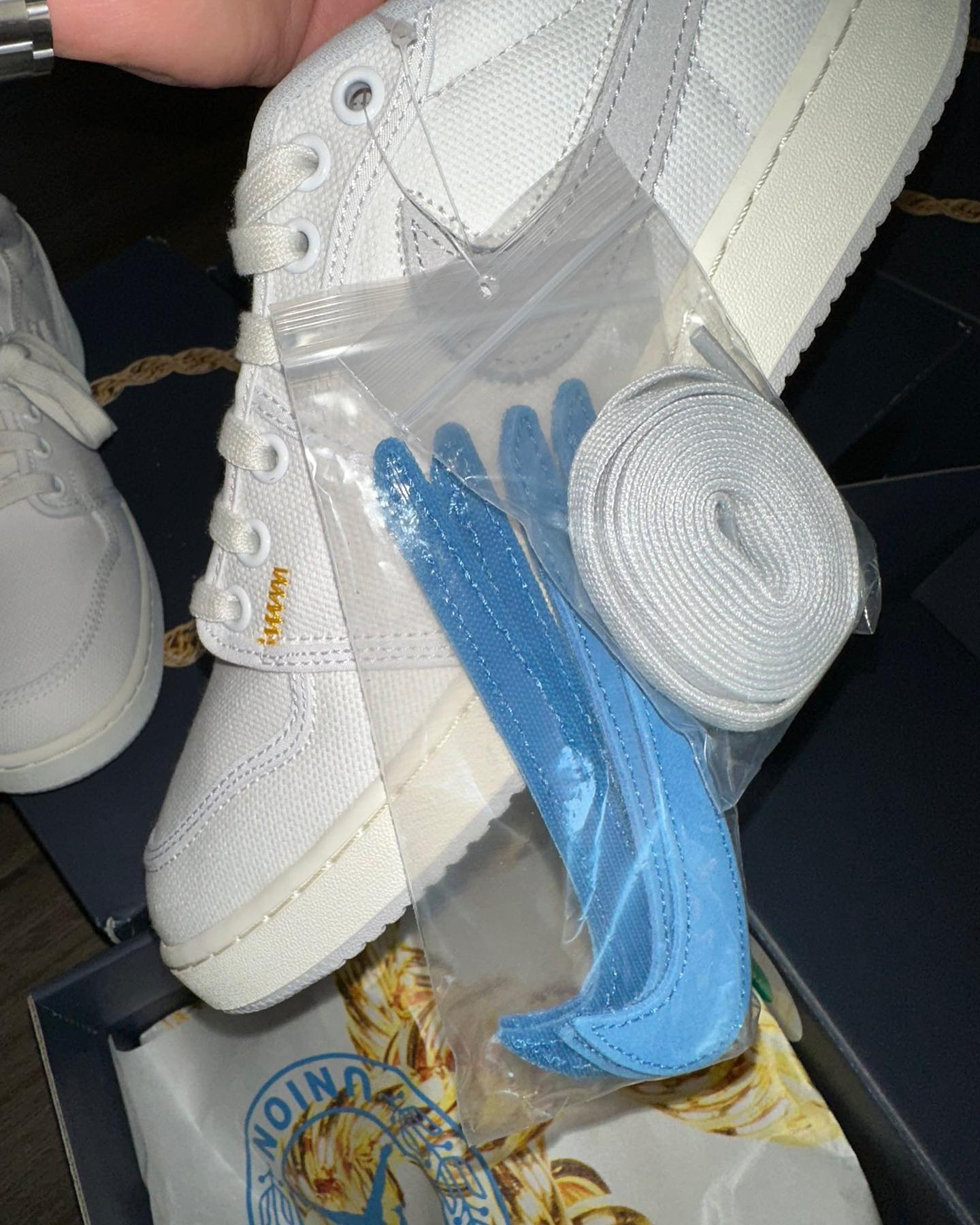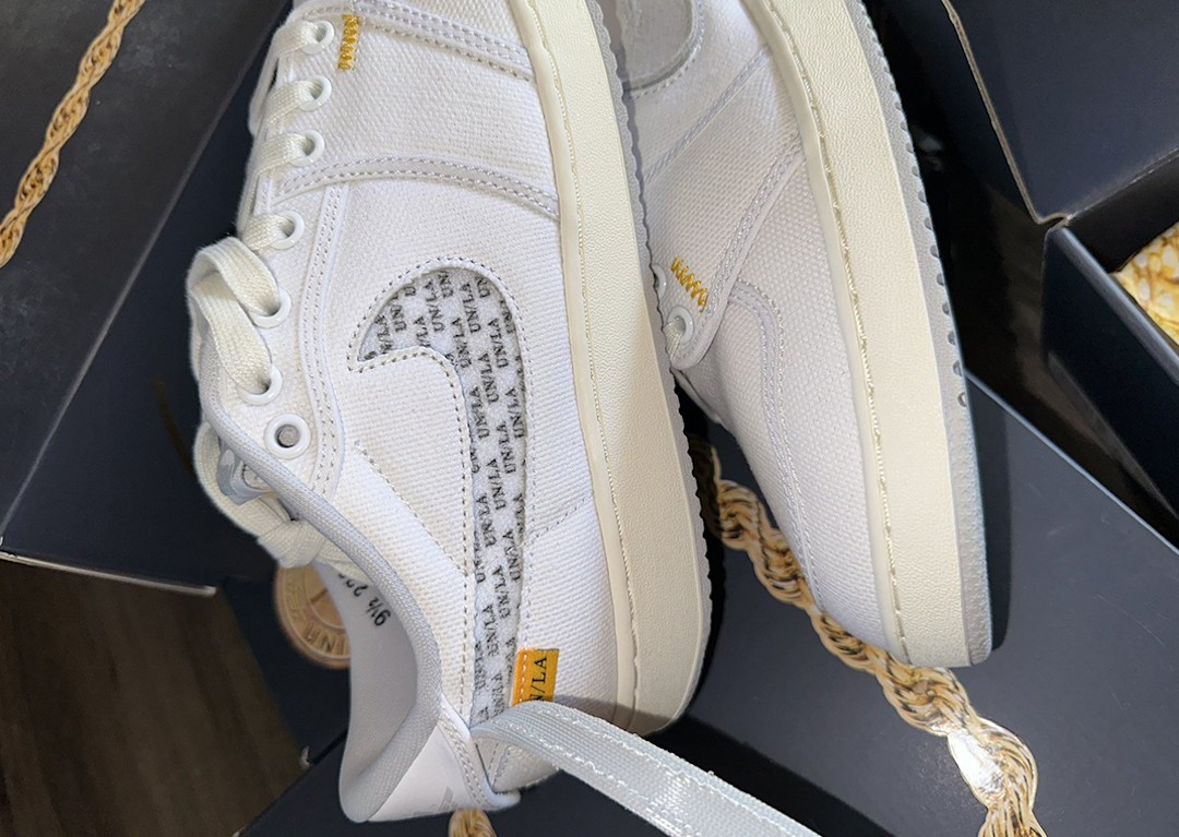 让小编最惊喜的就是可拆卸的 Nike Swoosh Logo,拆下后可以看到内衬印有 “UN/LA” 字样,彰显联名鞋款身份。
