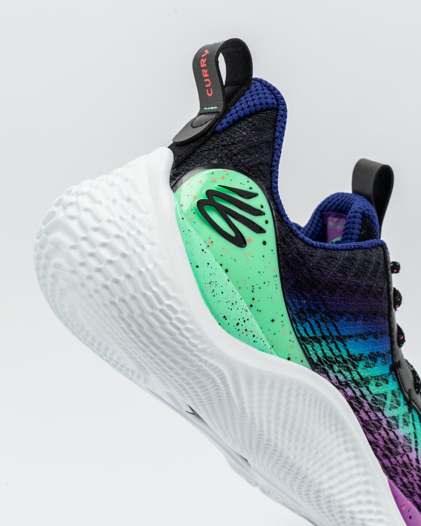 后跟上以浮雕造型呈现库里个人 LOGO,同样也是 Curry Flow 系列首次出现。