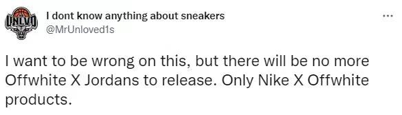 好消息是,即使 OFF-WHITE 与 Jordan Brand 真的截止于此,但 OFF-WHITE 与 Nike de 合作还会继续进行,毕竟明年的 OFF-WHITE x Air Force 1 Low 的消息还在不断泄露,Virgil 妻子也在年初的迈阿密展上都暗示过双方还将继续合作。