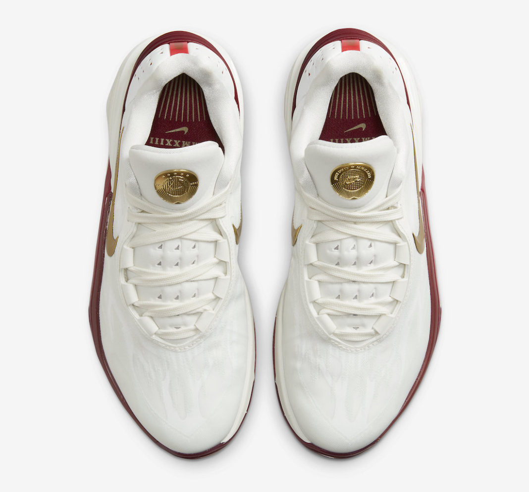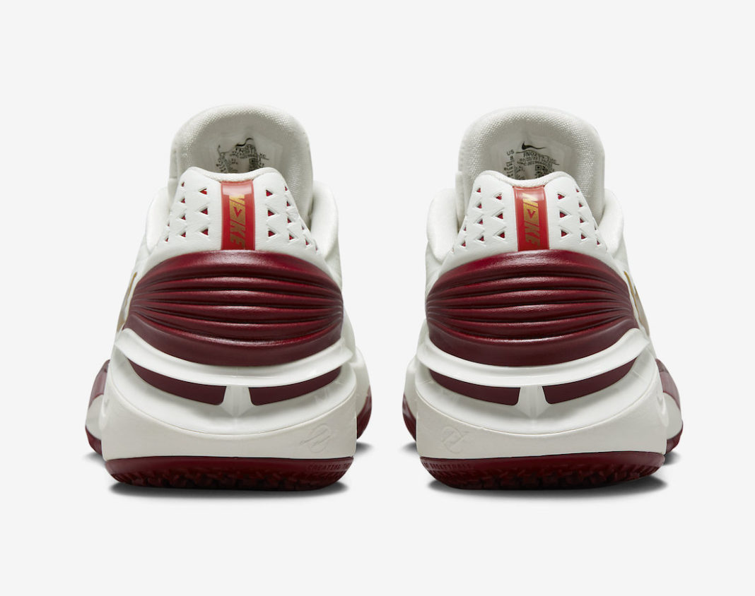 配色上以白色为主调,辅以金色的 Swoosh、鞋舌标签,搭配后跟红色 TPU,营造出浓郁节日气氛。