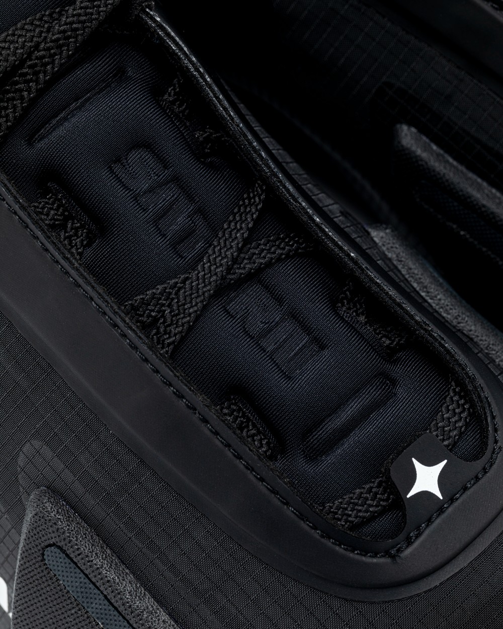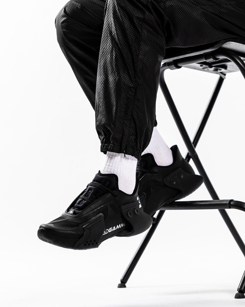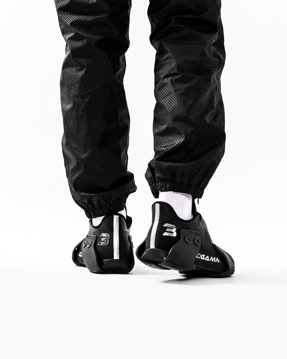 通体黑色的外表,加上电镀银色的细节,将酷炫与科技感完美结合,营造出的视觉效果相当赛博,也更像是一双概念鞋。