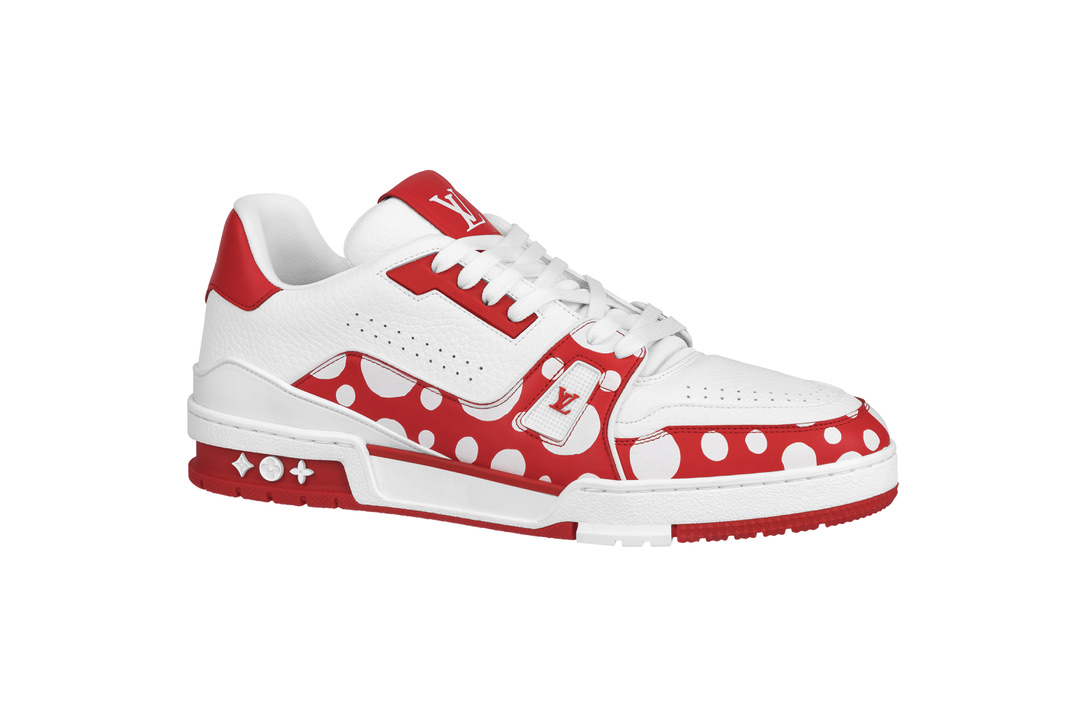 其中作为球鞋玩家关注的重点,Louis Vuitton x Yayoi Kusama 合作款 Trainer 也迎来曝光。