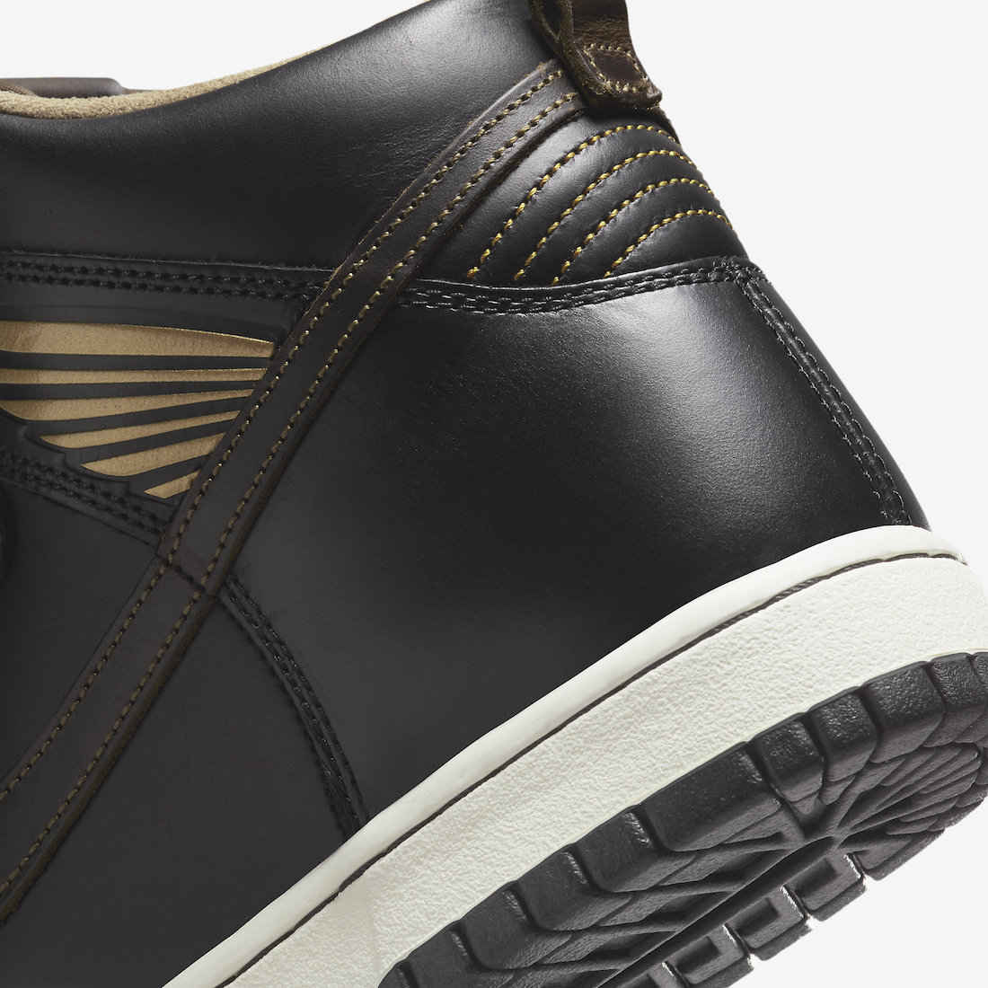 鞋舌处印有 Pawnshop Logo,鞋侧面印有金色翅膀图案,彰显联名鞋款身份。