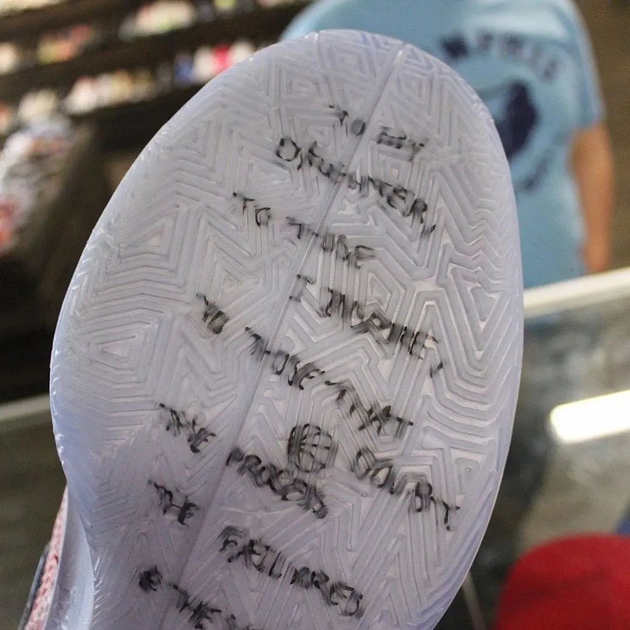 小男孩也是第一时间,将这双带有亲签的 Nike Ja 1 带到了球鞋店铺,但他并没有将其卖掉而是将它更好的包裹了起来,而正是因为这一举动让不少小伙伴看到了近距离的 Nike Ja 1 实物图。