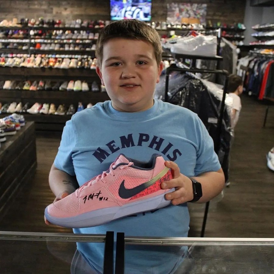 在 1 月 2 日灰熊对阵的国王的赛后,一位场边的小球迷很幸运地成为了除莫兰特外,「全世界第一位」获得 Nike JA 1 的人。