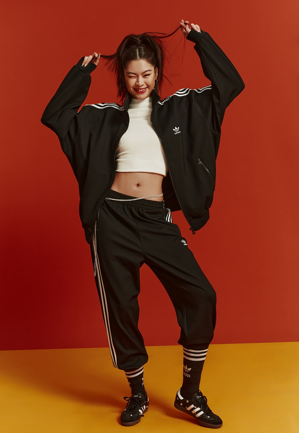 服饰版型采用经典的三条纹 Tracksuit 为基础打造,这个诞生于 1967 年的版型早已经是三叶草旗下最受欢迎的服饰单品之一。
