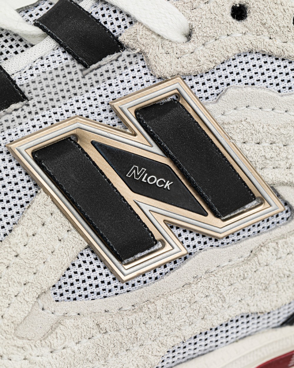 材质方面采用细腻麂皮和网眼布拼接打造,让整双鞋层次更丰富。