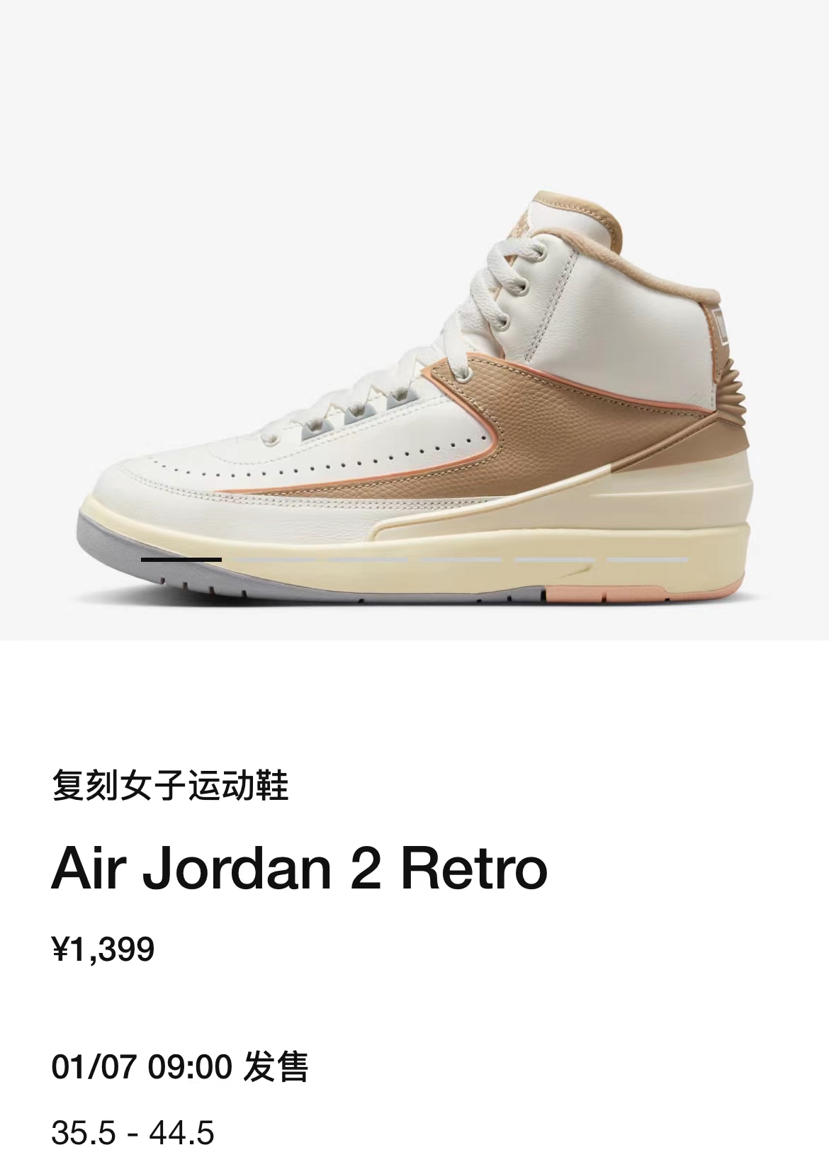 目前,这款 Air Jordan 2 现已上架 SNKRS 中国 APP,将于 1 月 7 日本周六上午 9 点发售,发售价格为 ¥1399 元。