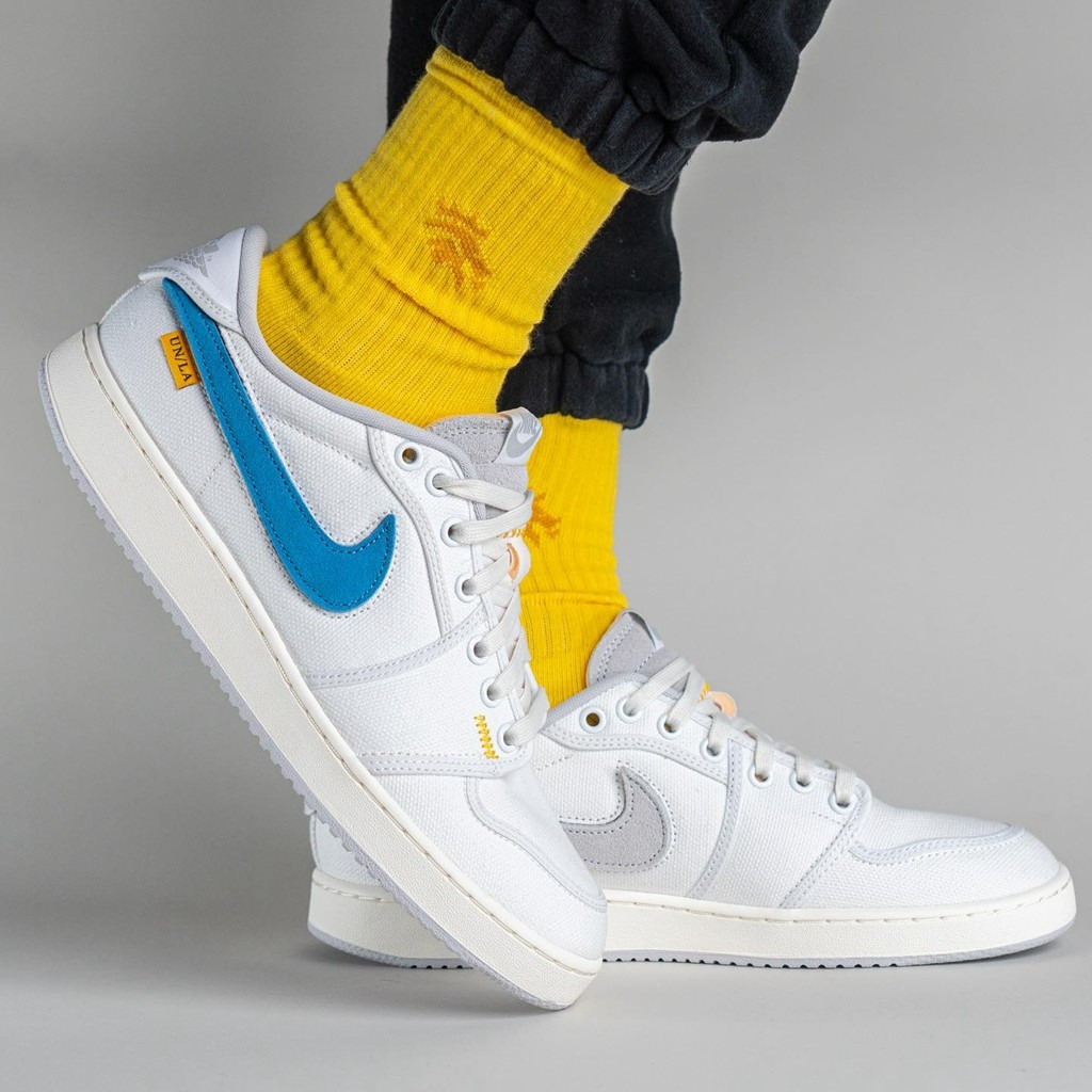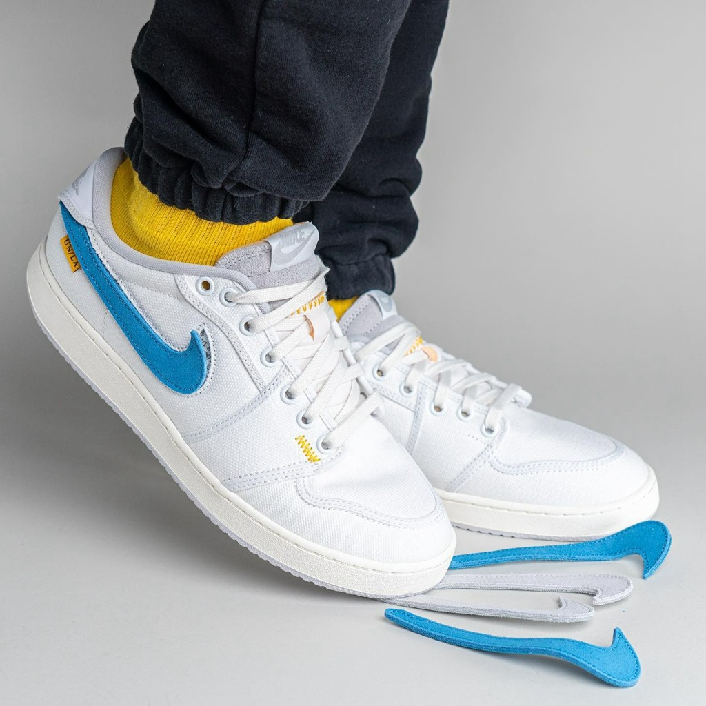 这双便是上个月刚曝光的 Union x Air Jordan 1 KO Low,最近释出了实物上脚图,会是你的菜吗?