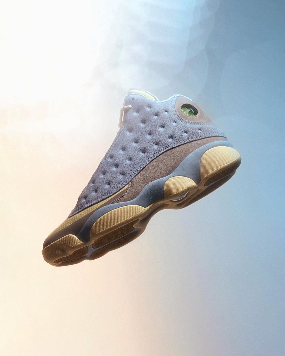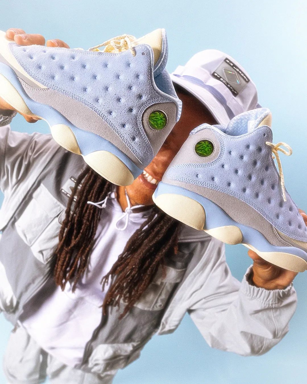 SoleFly 再度携手 Jordan Brand 以 Air Jordan 13 为蓝本设计,整体采用大面积北卡蓝呈现,目前市价在 ¥1700 元左右。