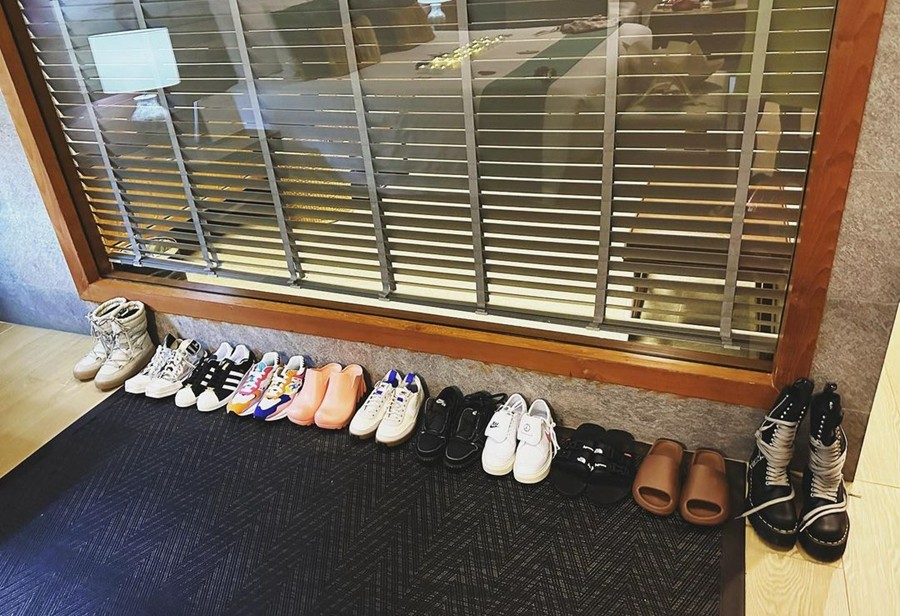 还毫不吝啬的晒出这次出行带的所有球鞋,十几双鞋估计一个行李箱都装不下,韩国第一女鞋头的身份是坐实了。