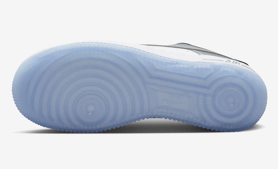 最后以白色中底搭配水晶材质大底收尾,完善整体造型设计。
