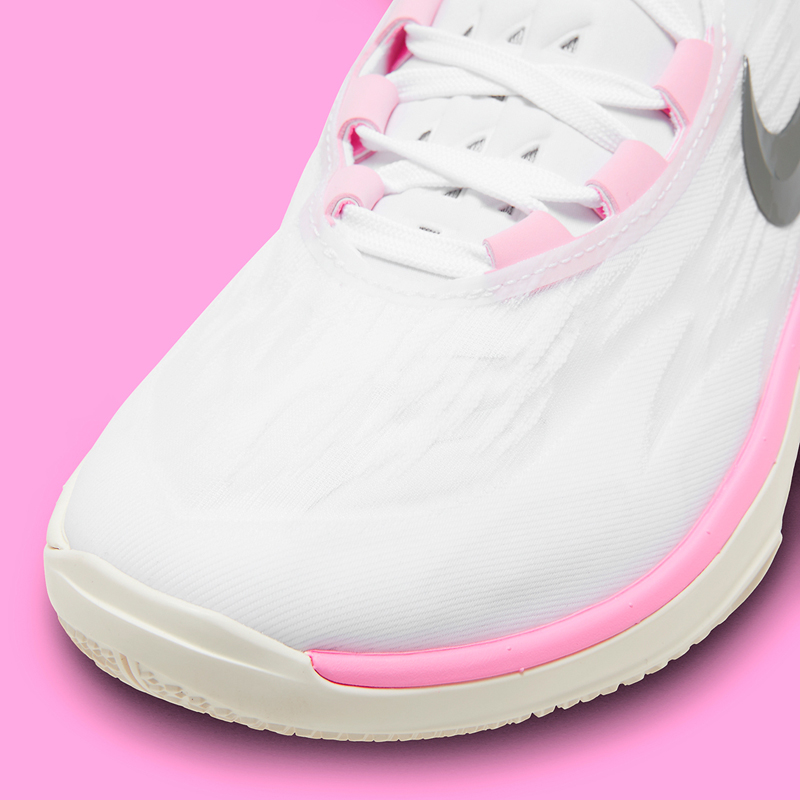 整双鞋采用白色为主调,辅以淡粉色、灰色妆点,视觉效果格外清新可爱,跟「抗乳腺癌」配色实在是太像了。