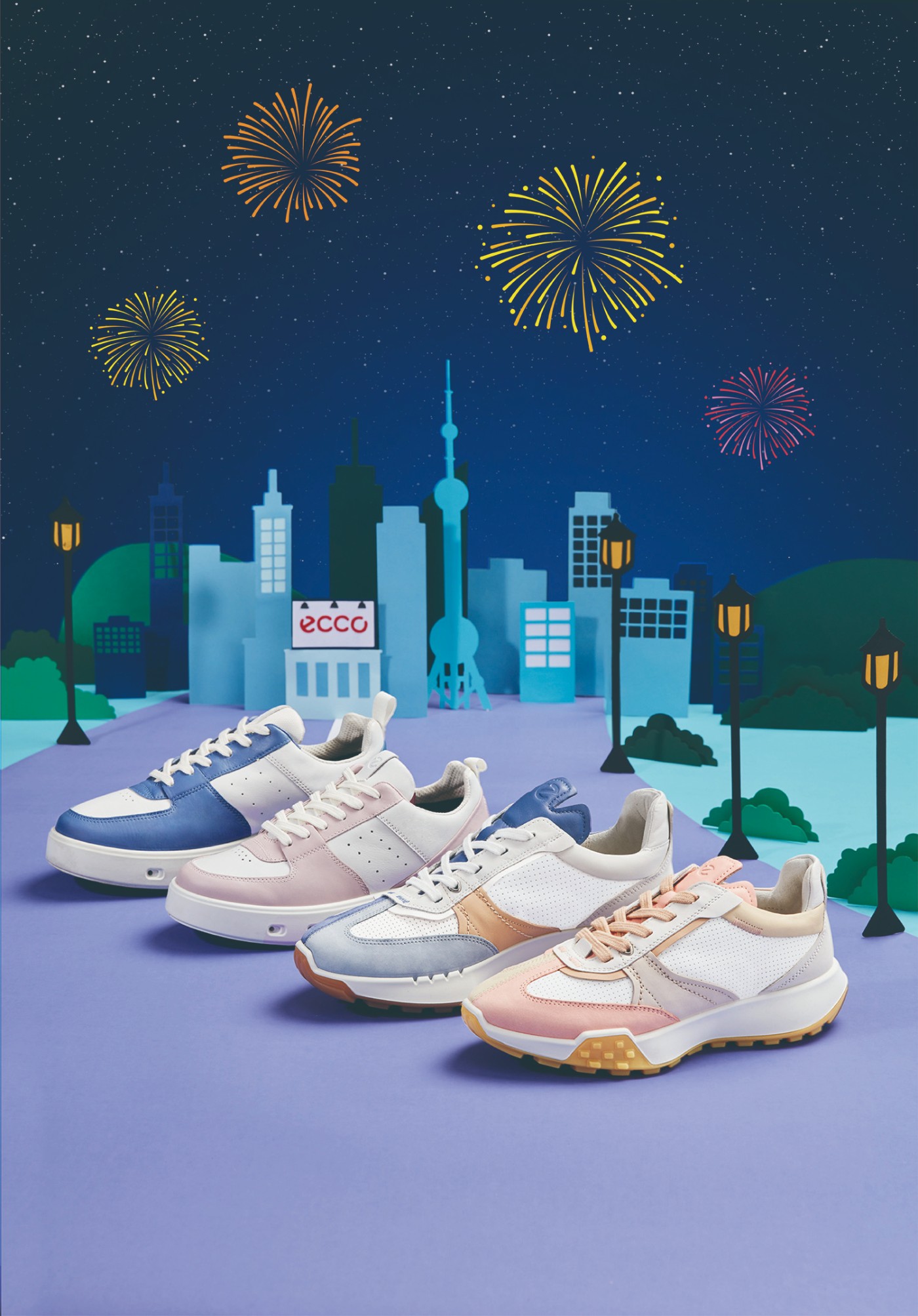 此次 ECCO 与不二兔以 RETRO SNEAKER 复古跑鞋系列、STREET 720 街头 720 系列、BIOM 健步系列作为设计蓝本,呈现新年配色。