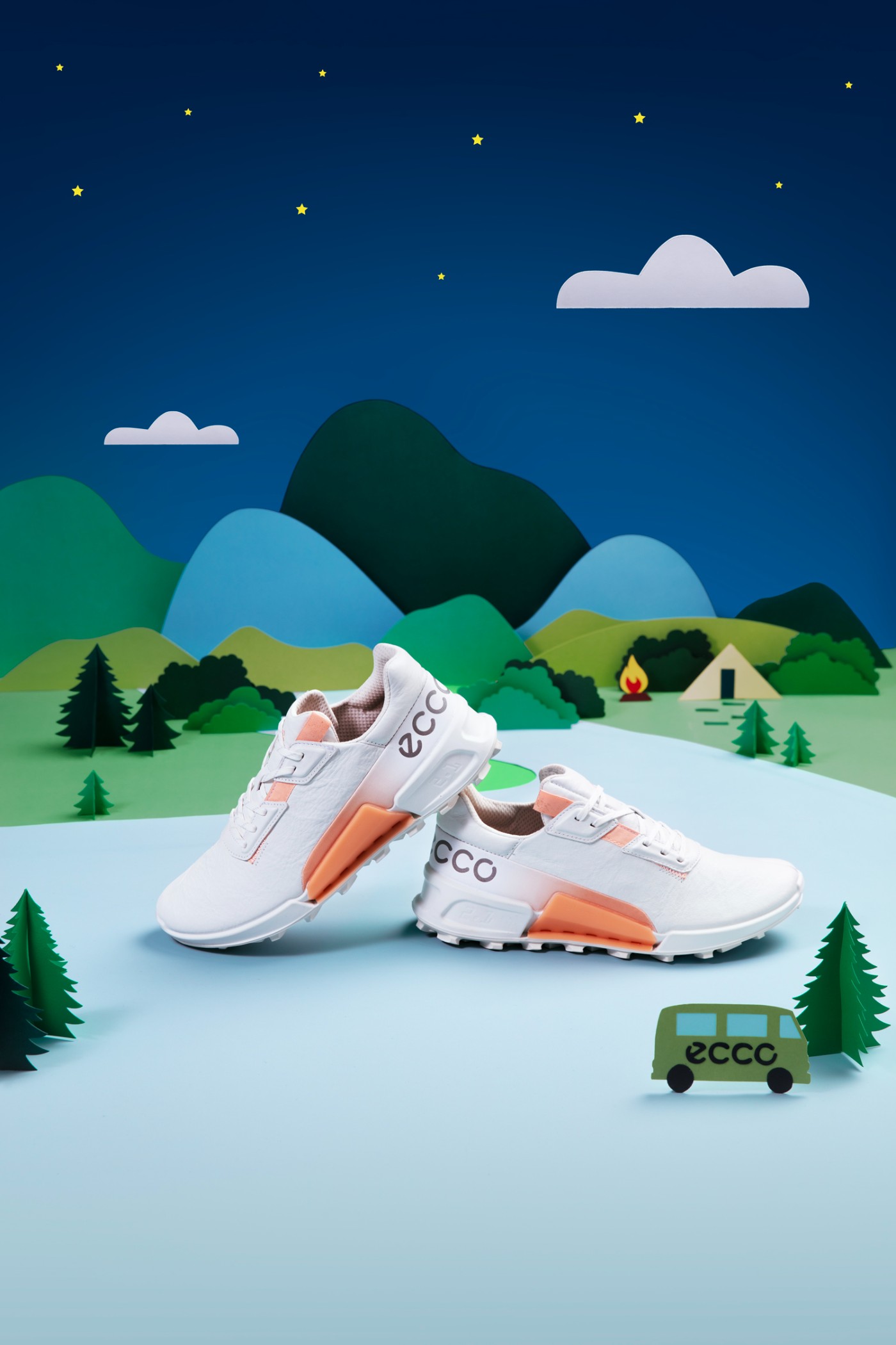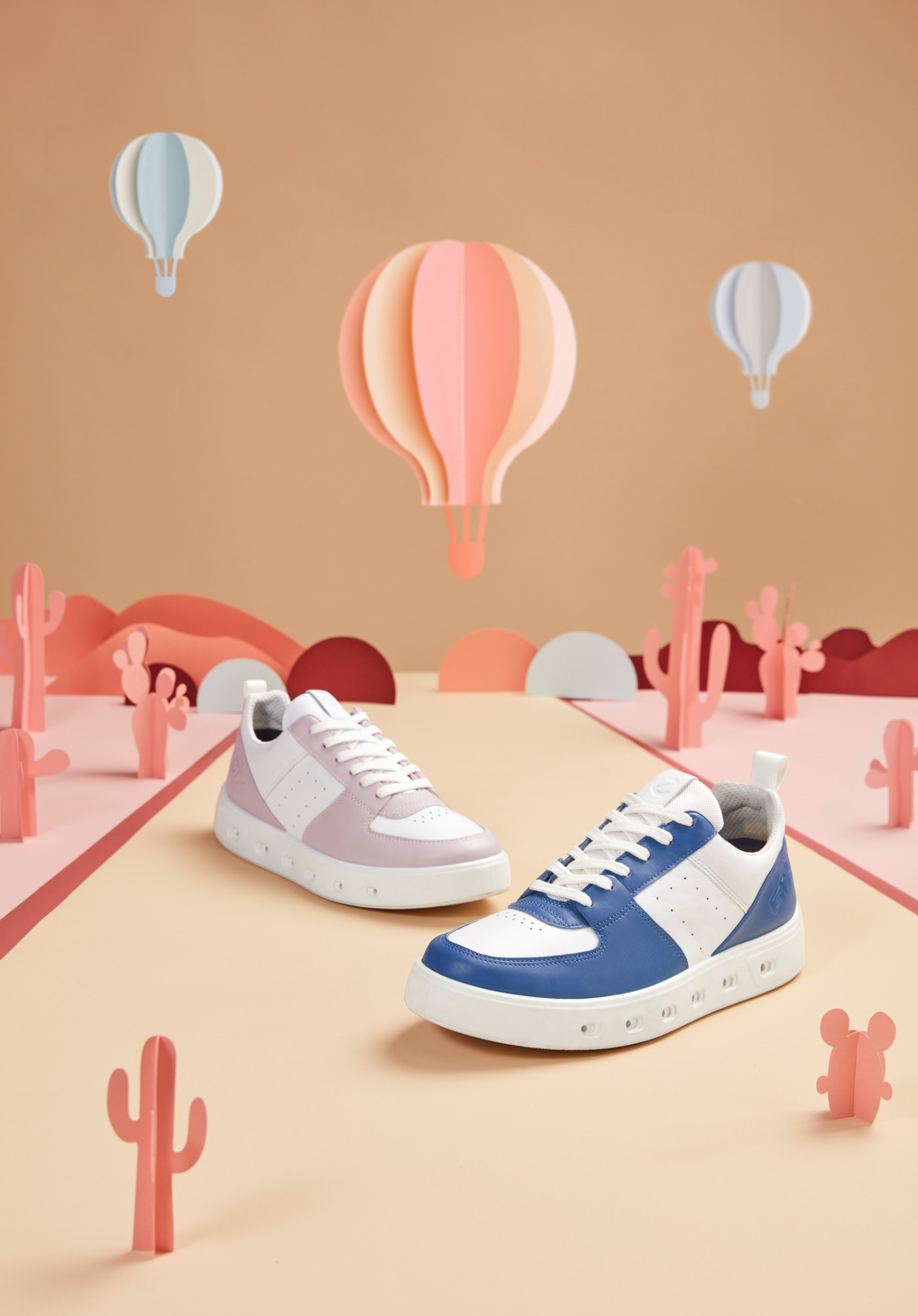 其中 ECCO RETRO SNEAKER 复古跑鞋系列,作为当下最为热门的鞋款, 70 年代复古华夫底散发出浓郁的摩登复古气息,搭配吸睛的鸳鸯拼色与清新色彩,描绘早春浪漫色调。