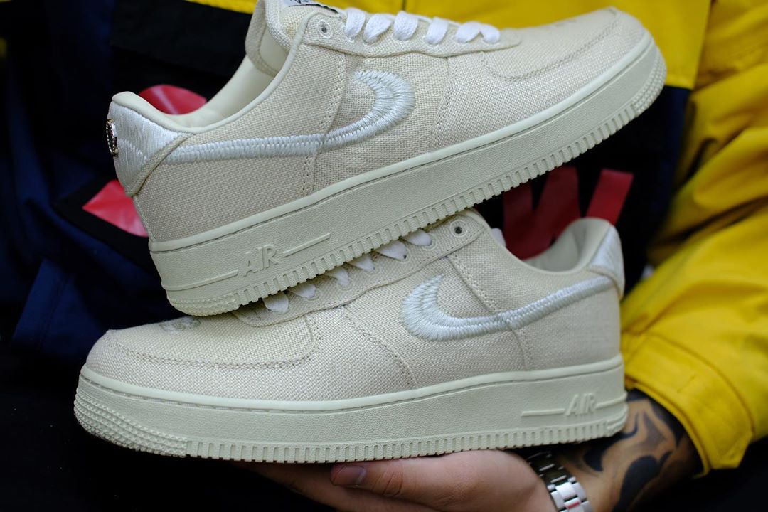 鞋侧刺绣 Swoosh 通过缝线分成上下两层,与 Stüssy x Air Force 1 的设计颇为相似,其中米色款最贵一双将近四千人民币。