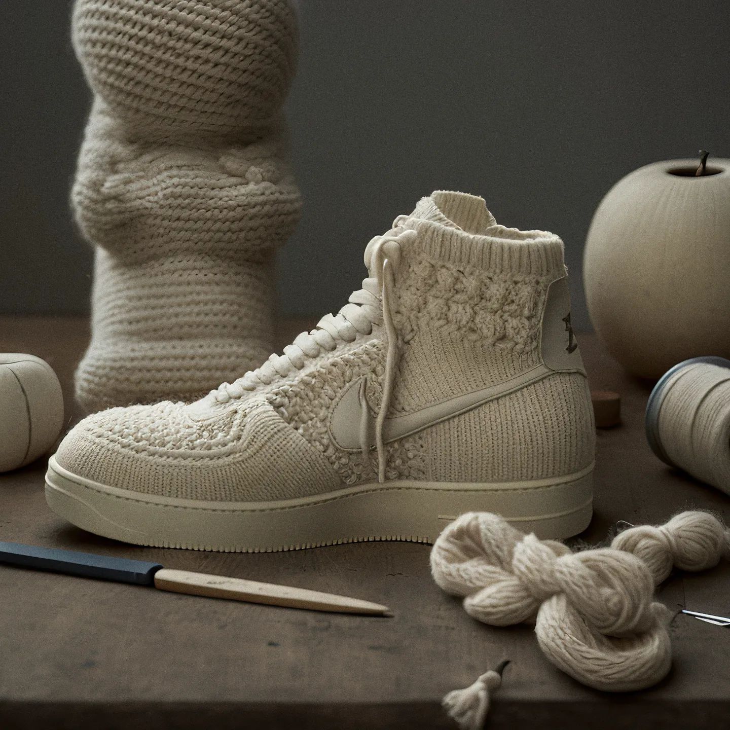 只是将鞋面材质改为温暖质感的毛线覆盖,不同纹理交织呈现出丰富层次感。