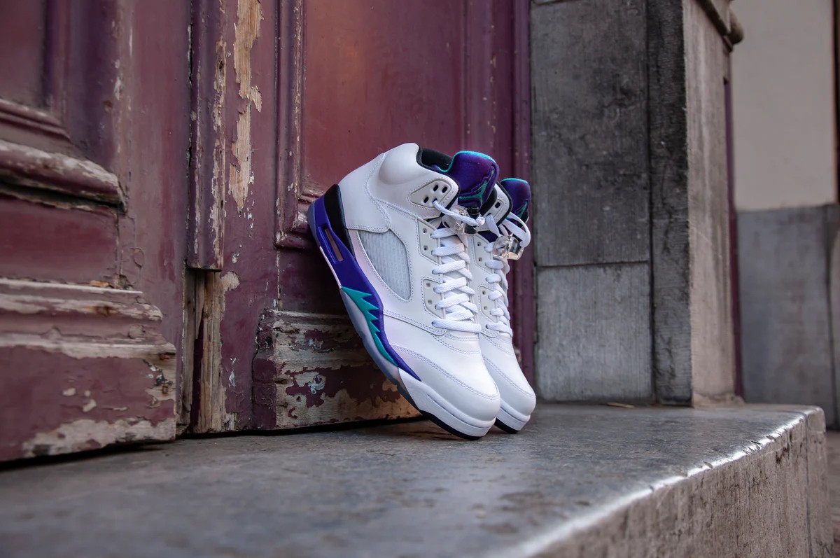 同样是 Air Jordan 5 元年配色之一,白葡萄凭借罕见的紫色与湖水绿装扮,一直都非常圈粉。